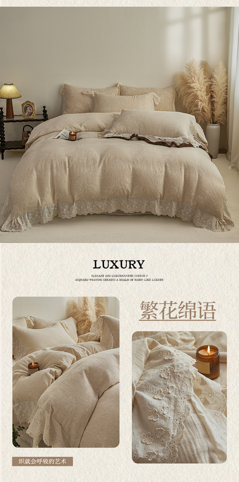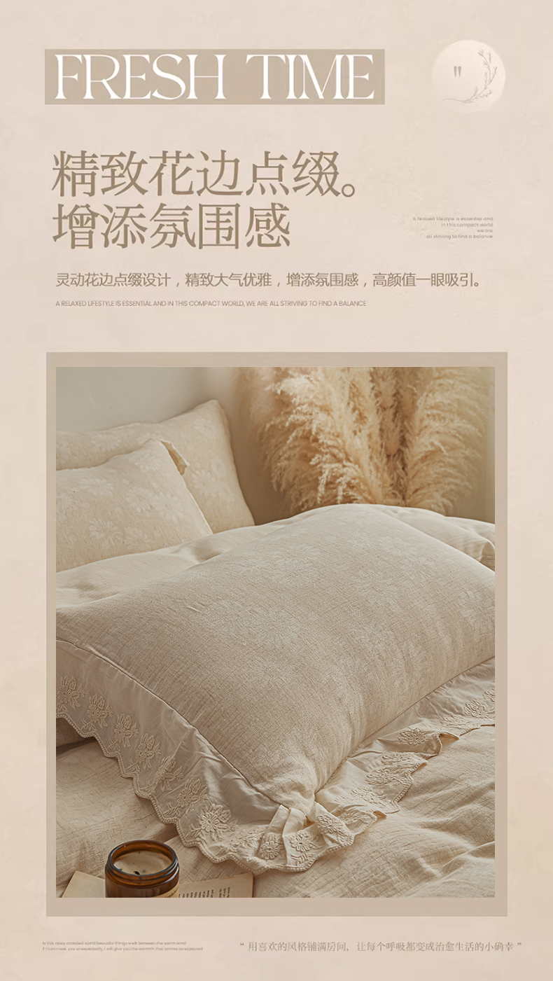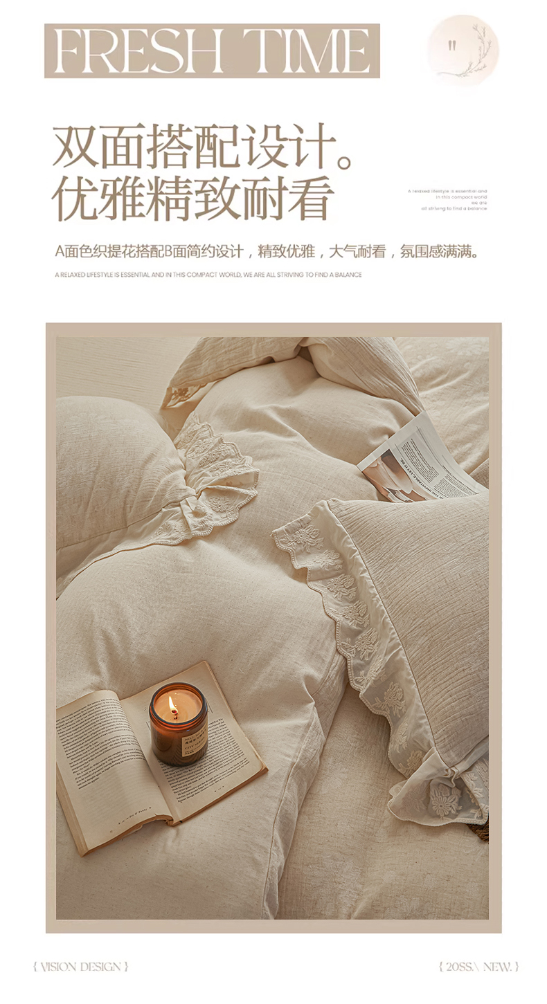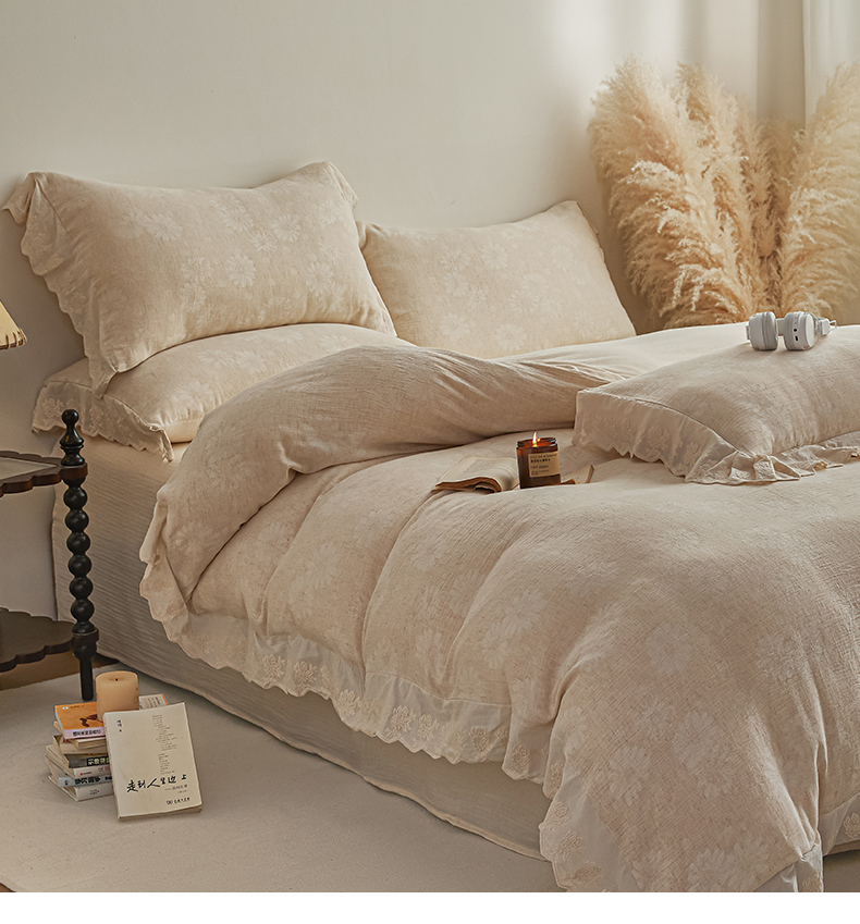 当前位置: 91家纺网 > 商品网购 > 床品套件 > 四件套 > 提花四件套 > KA家纺 2026春夏新款色织提花棉麻四件套花边款 花影素帛