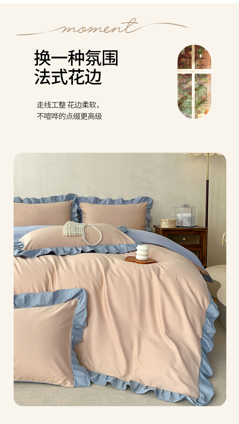 (总)艾迪尚家纺 2026新款法式韩版荷叶边纯色长绒棉四件套,薄荷青灰,冰川蓝香草白,茉绿奶芙,奶芙慕粉,青提絮语,柔杏浅绿,瑞绿慕斯粉,雾蓝杏语,云白芽绿,云灰仙女粉
