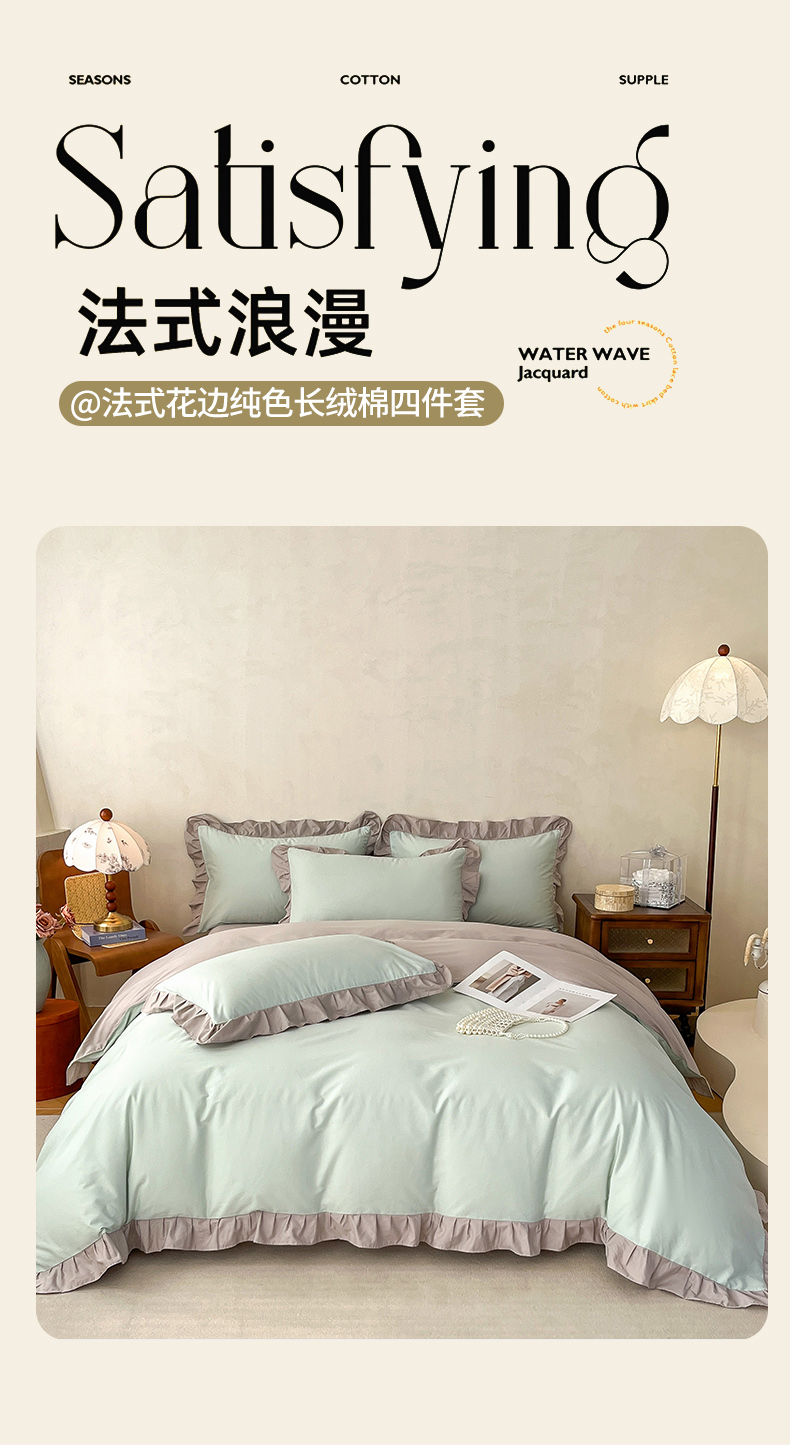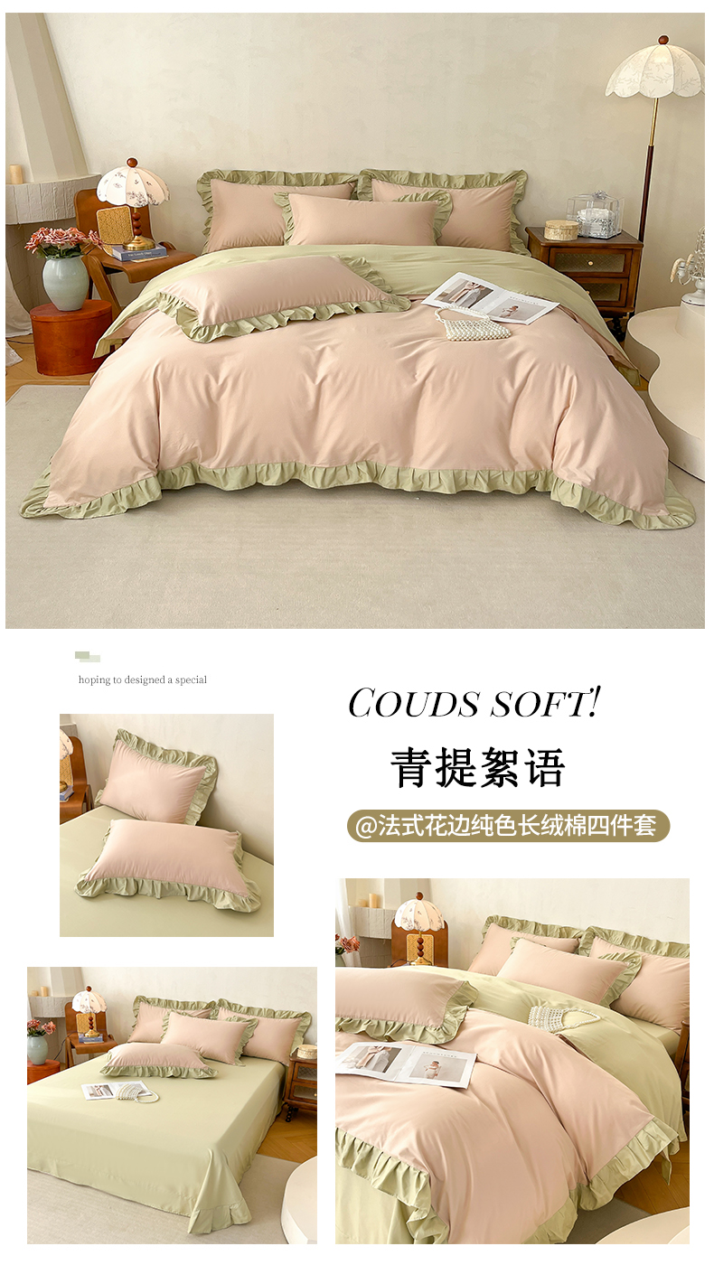 商品名称:(总)艾迪尚家纺 2026新款法式韩版荷叶边纯色长绒棉四件套