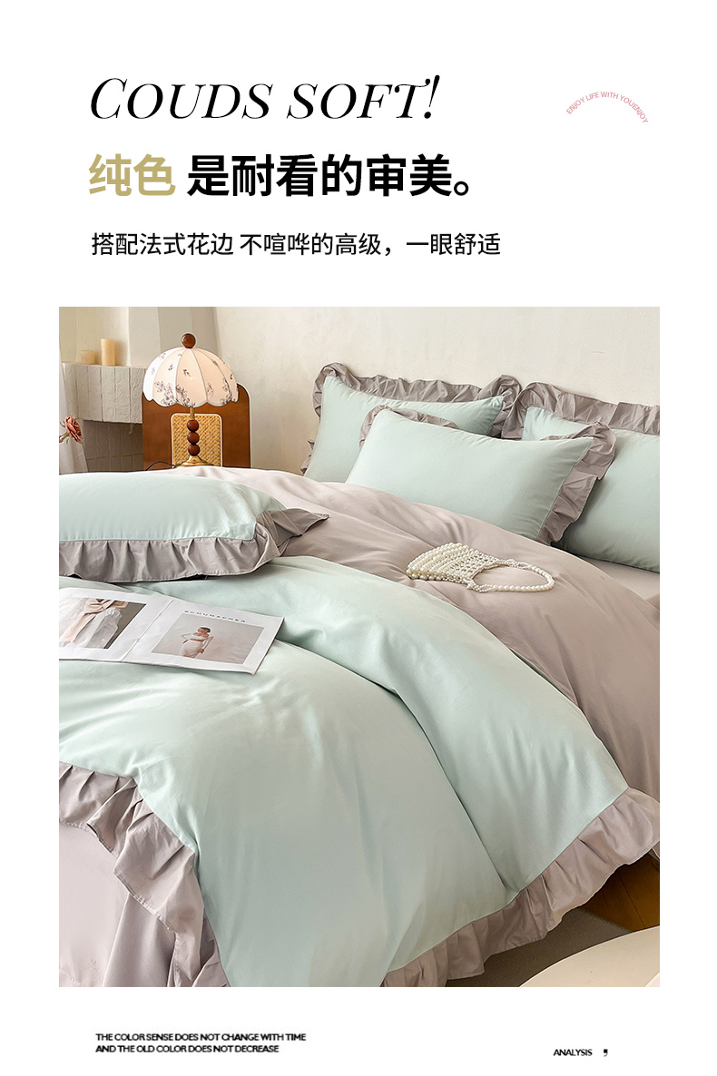 (总)艾迪尚家纺 2026法式韩版荷叶边纯色长绒棉纯棉单被套,薄荷青灰,冰川蓝香草白,茉绿奶芙,奶芙慕粉,青提絮语,柔杏浅绿,瑞绿慕斯粉,雾蓝杏语,云白芽绿,云灰仙女粉