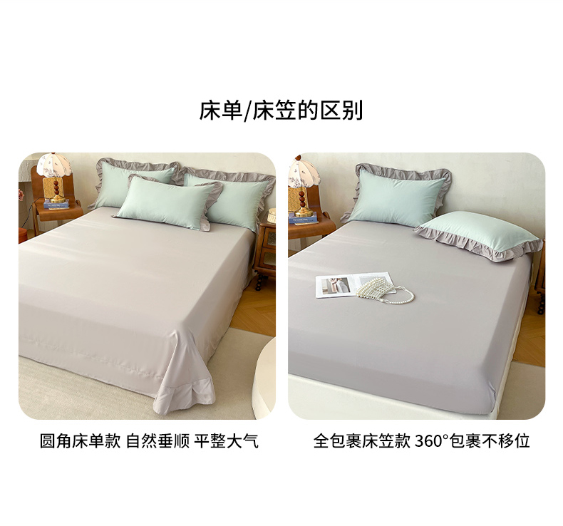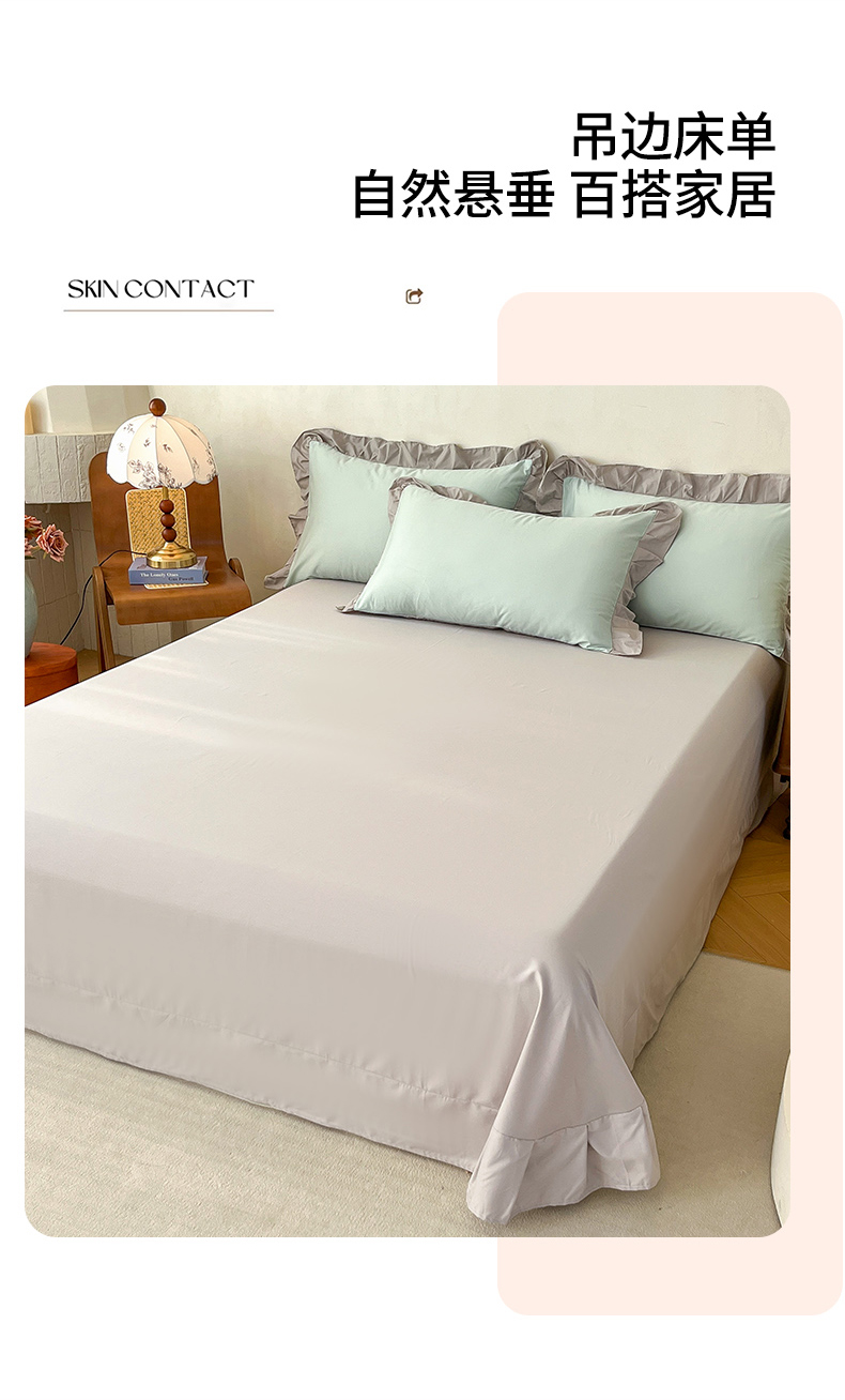 (总)艾迪尚家纺 2026法式韩版荷叶边纯色长绒棉纯棉单床单单品床单床单单件,薄荷青灰,冰川蓝香草白,茉绿奶芙,奶芙慕粉,青提絮语,柔杏浅绿,瑞绿慕斯粉,雾蓝杏语,云白芽绿,云灰仙女粉