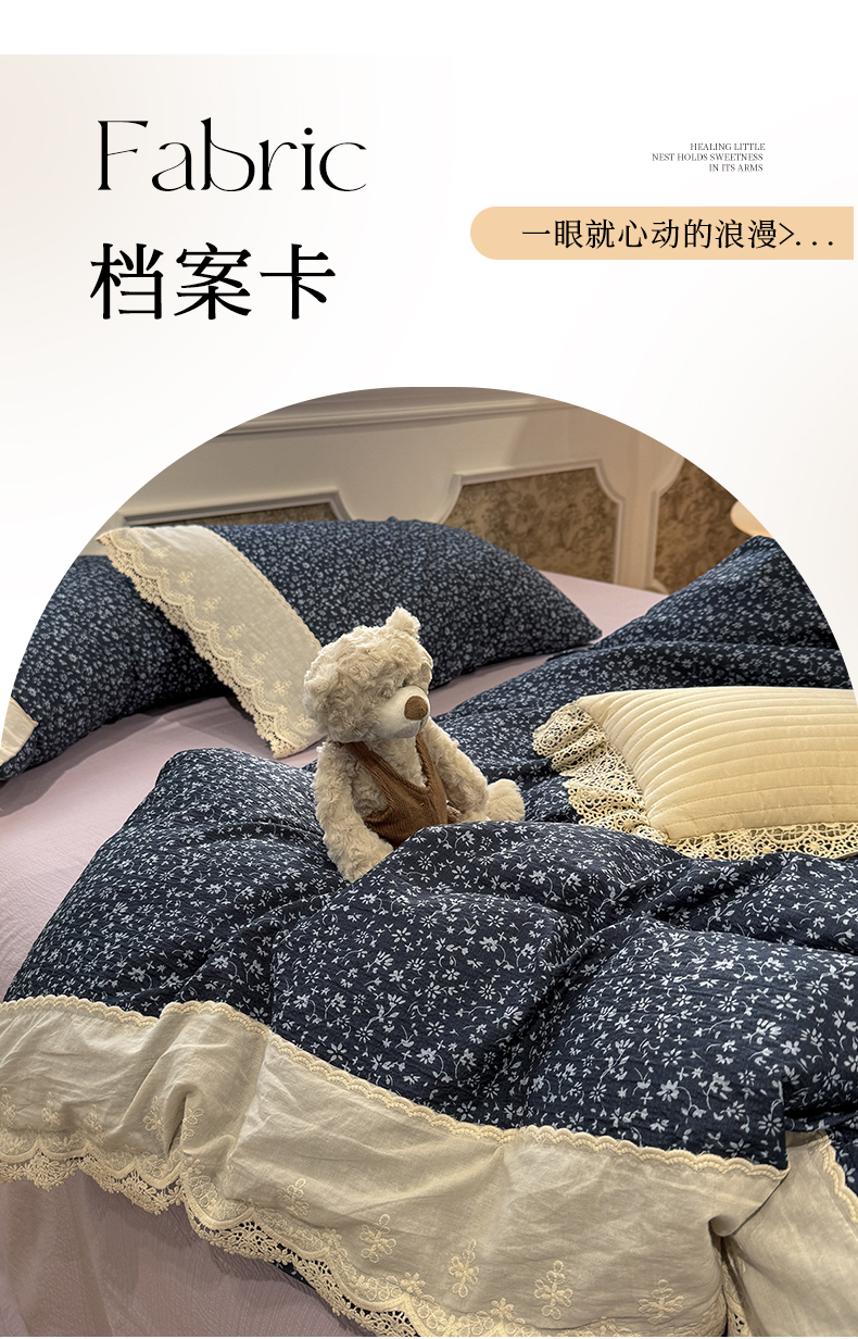 当前位置: 91家纺网 > 商品网购 > 床品套件 > 四件套 > 其它四件套 > 盼季家纺 2026新款舒适皱皱纱印花蕾丝花边四件套 复古蕾丝花边-莫青