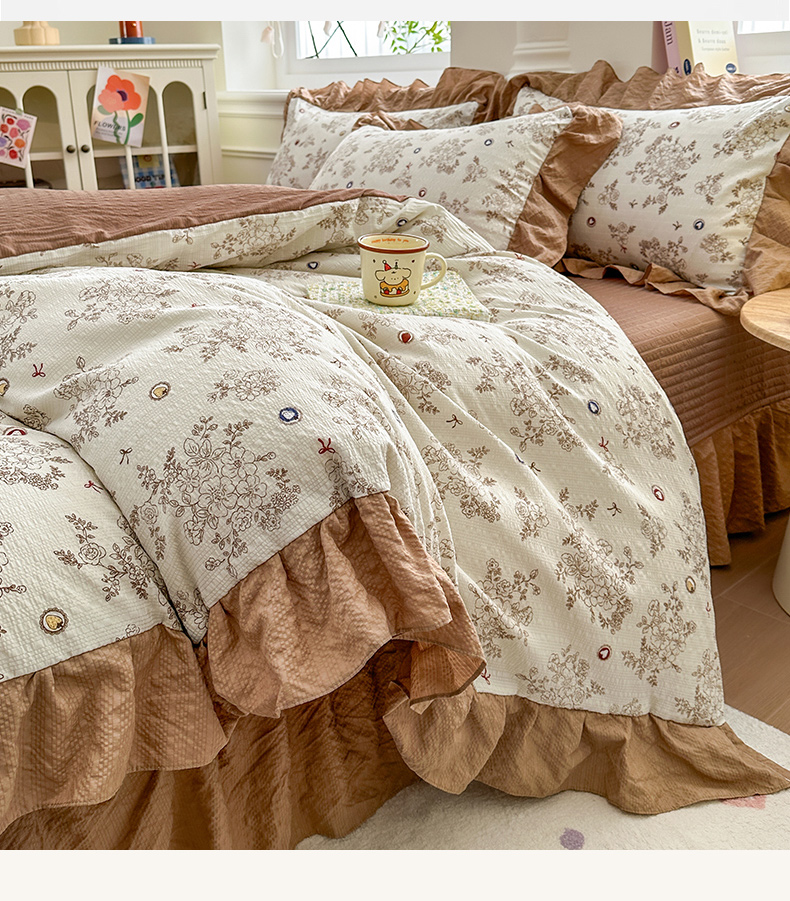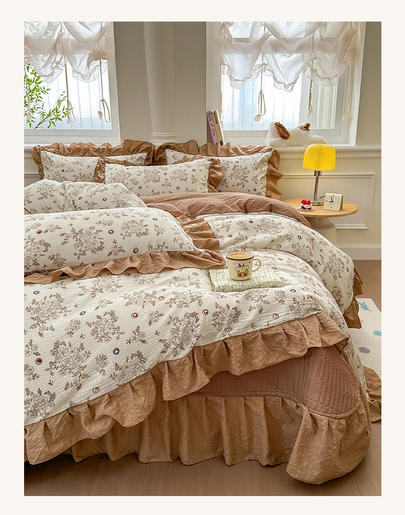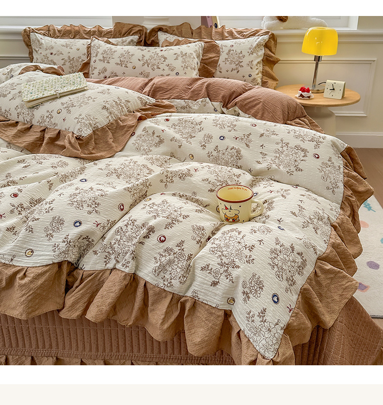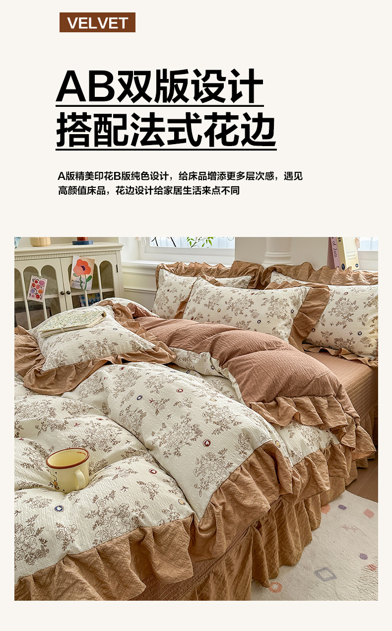 商品名称:安哆啦家纺 2026新款糯叽叽泡泡棉韩式花边床盖四件套 泡泡棉-焦糖玛奇朵
