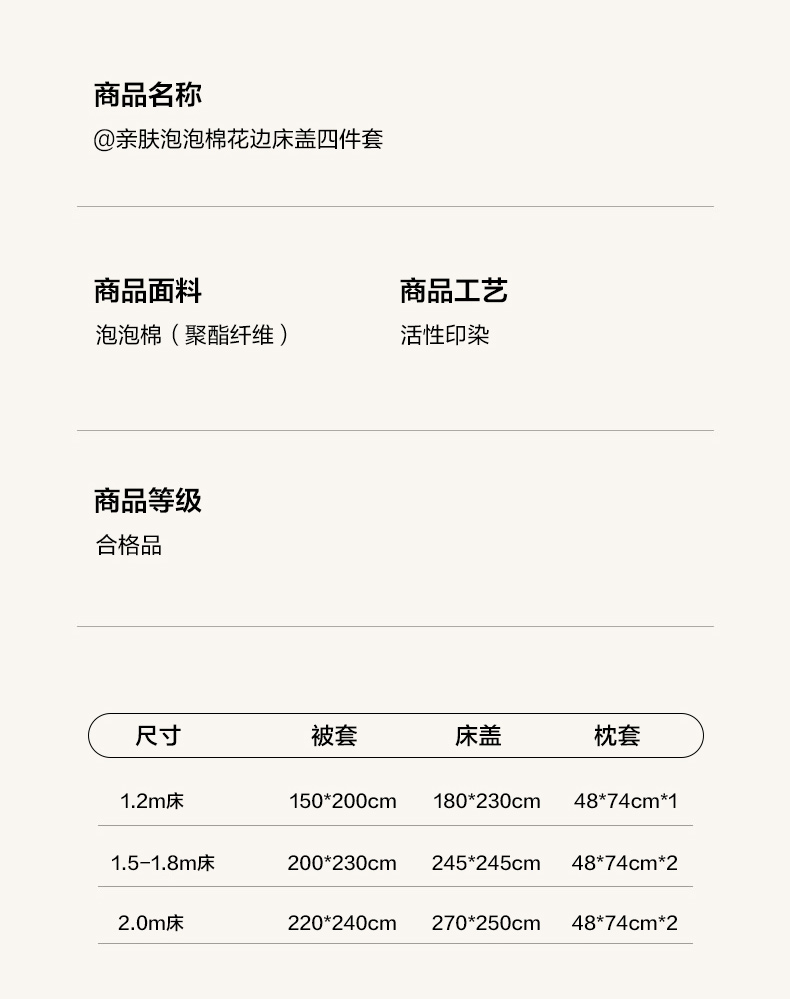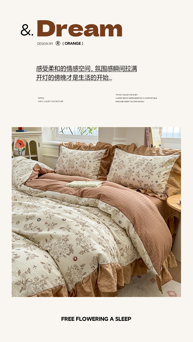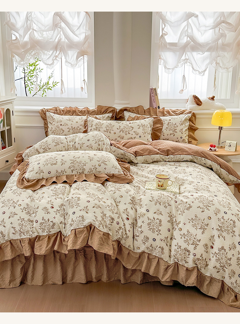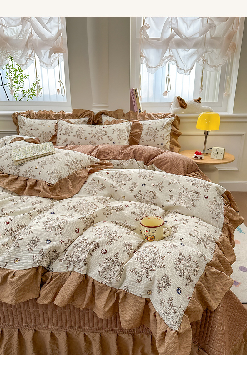 商品名称:安哆啦家纺 2026新款糯叽叽泡泡棉韩式花边床盖四件套 泡泡棉-焦糖玛奇朵