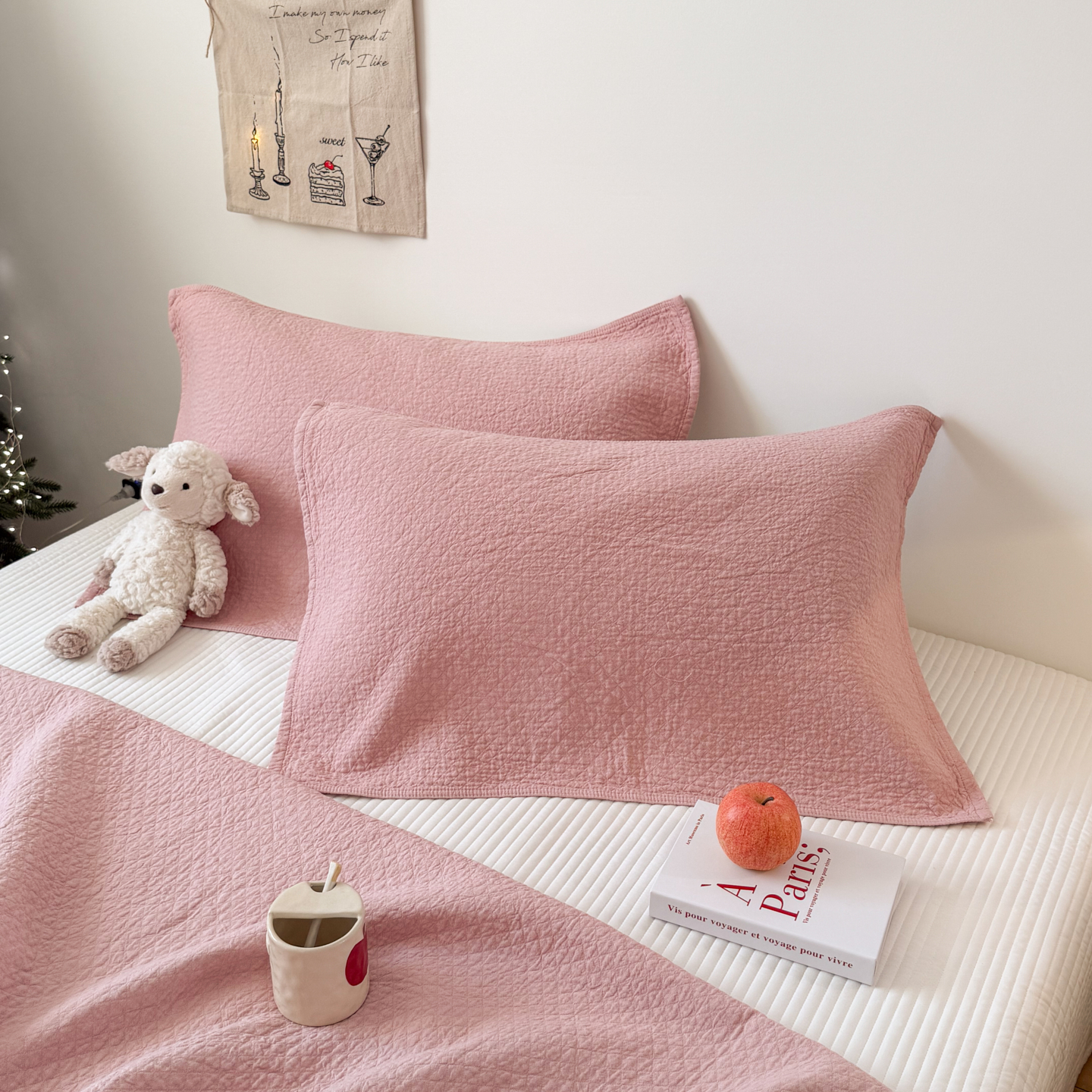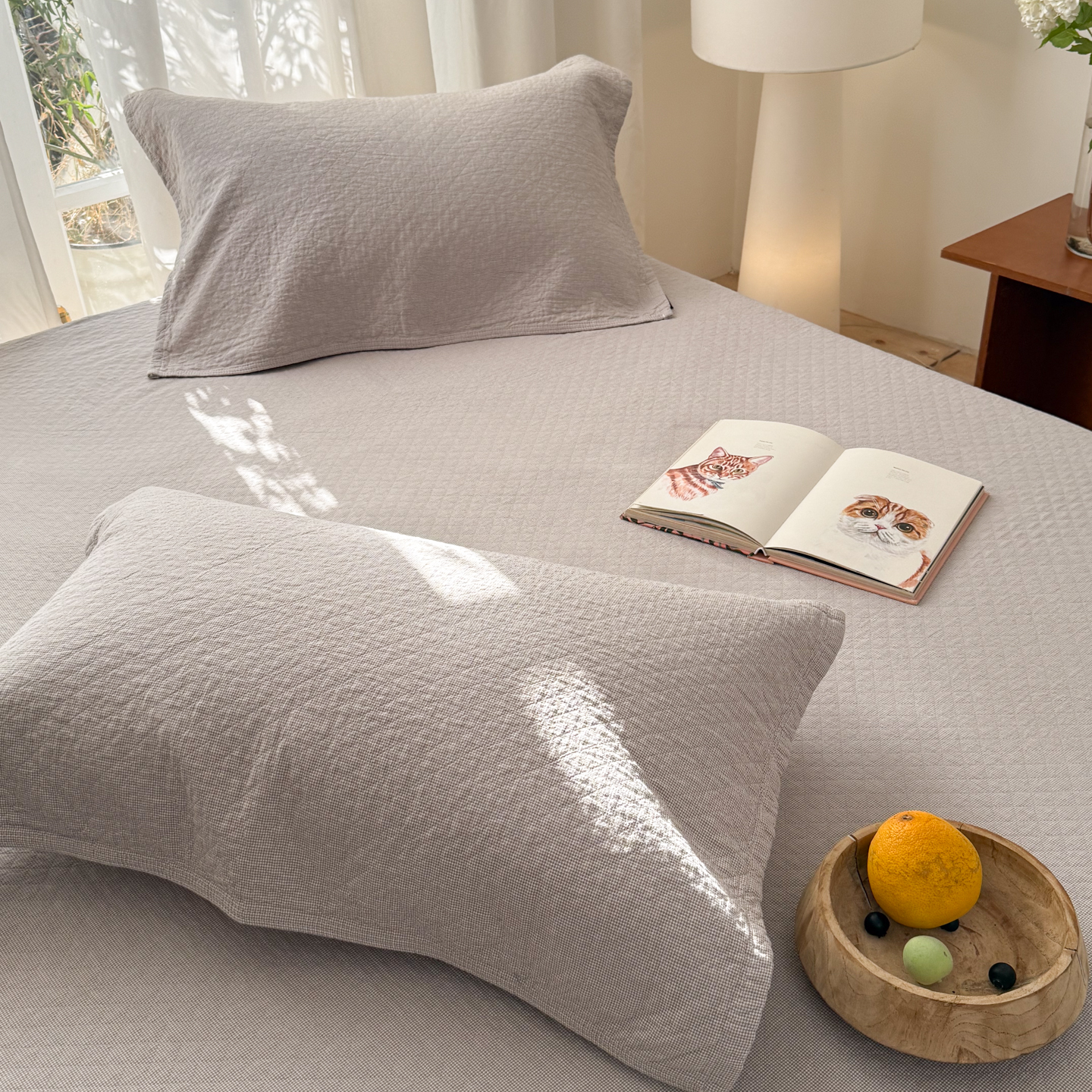 (总)沐瑟家纺 2025新款简约风多功能纱布盖毯纱布毯子毛巾被床盖沙发巾单毯枕巾枕套三件套,H本色,H橙色,H咖色,大马士革本色