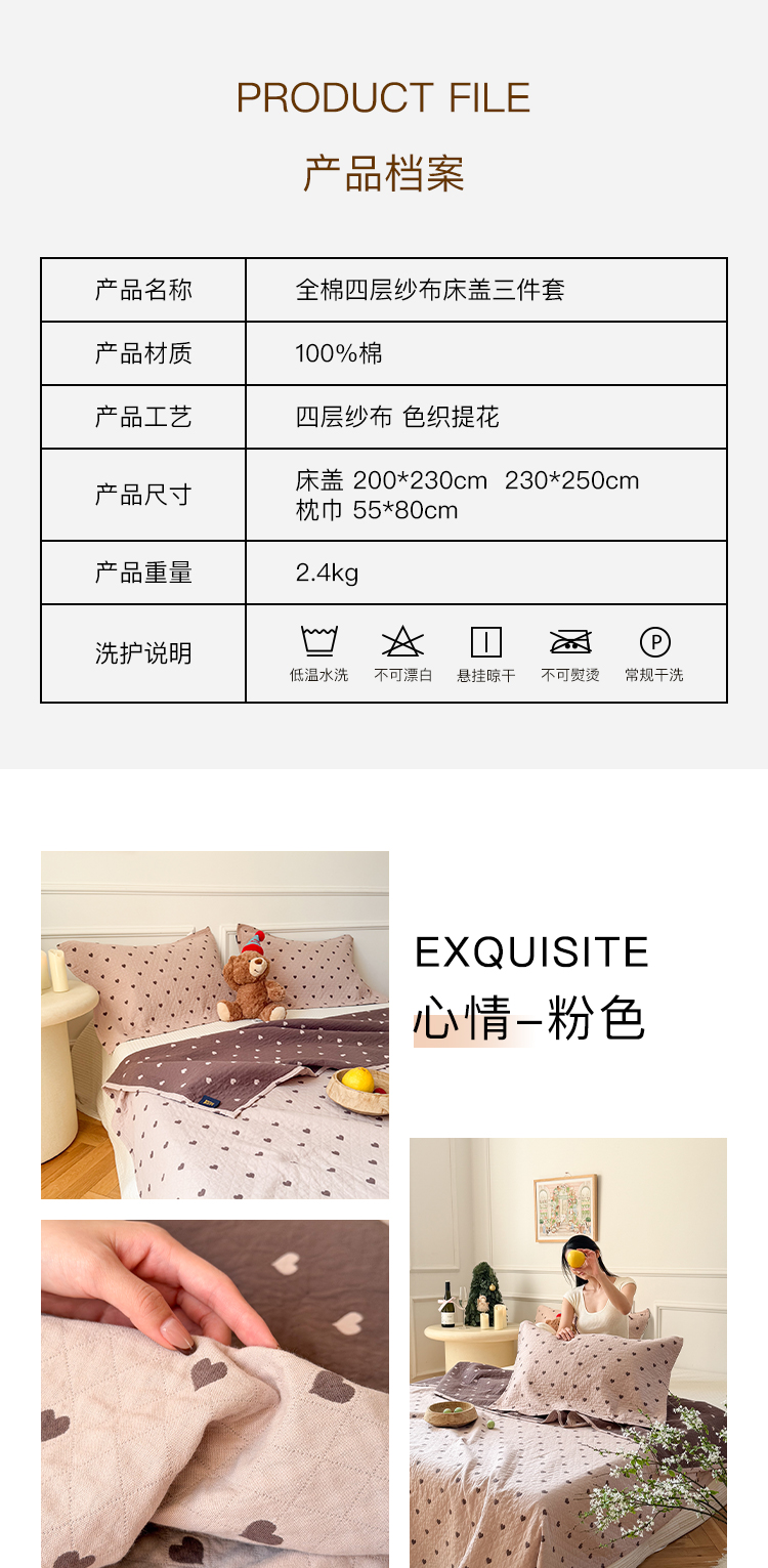 (总)沐瑟家纺 2025新款全棉纱布细纱布大床盖毯子床盖三件套LV系列,LV咖色,春意浓,玫瑰之约,小天鹅-绿,绽放-红色,绽放-姜黄