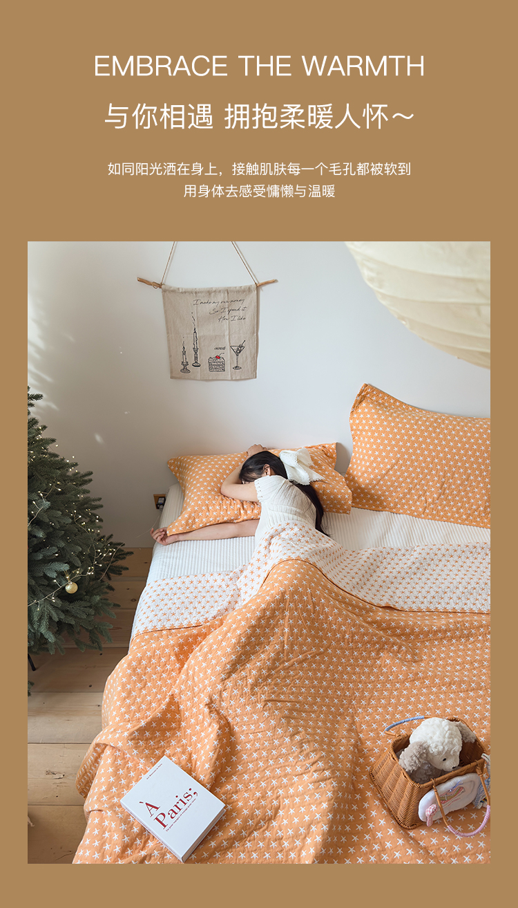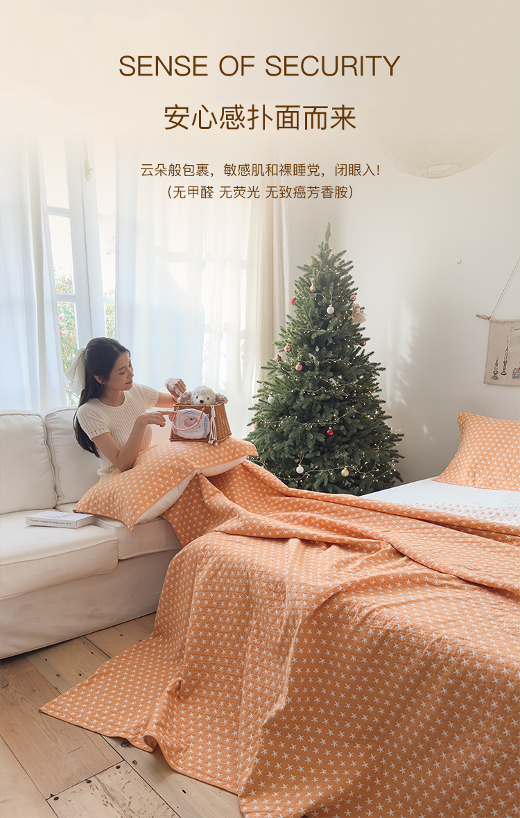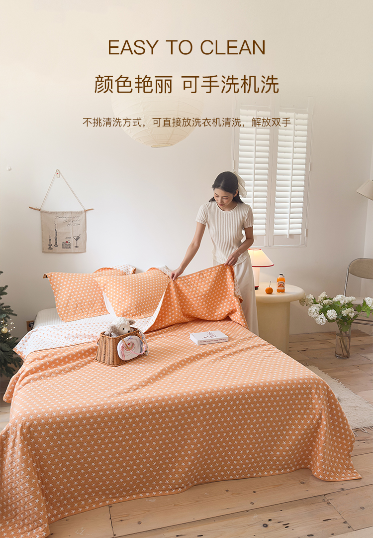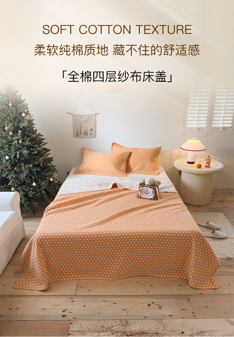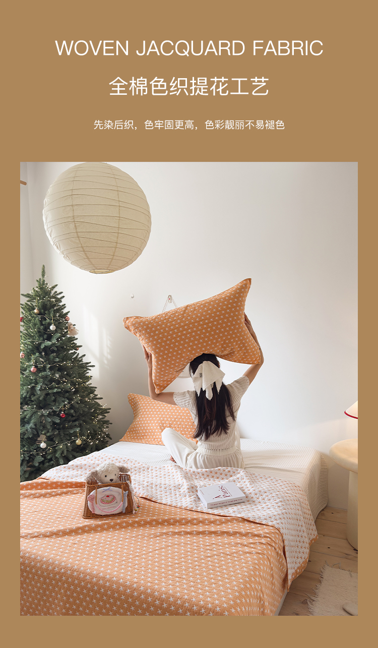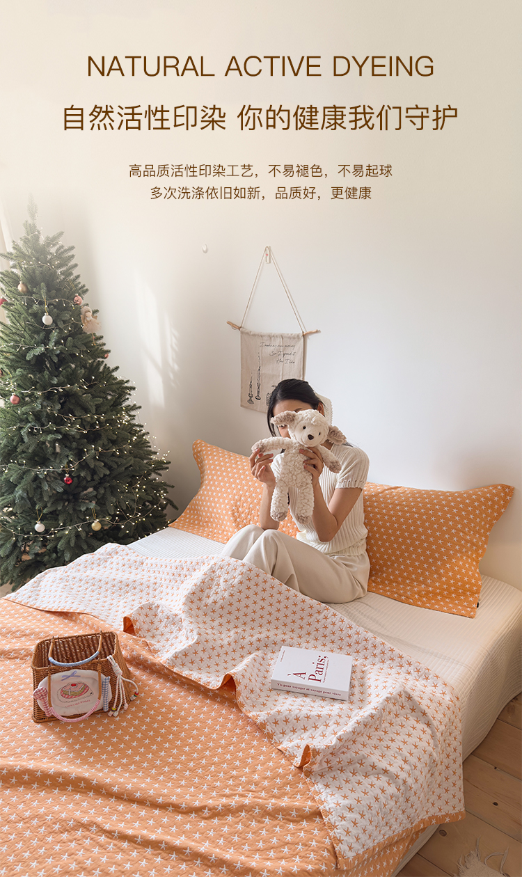 (总)沐瑟家纺 2025新款简约风多功能纱布盖毯纱布毯子毛巾被床盖沙发巾单毯枕巾枕套三件套,H本色,H橙色,H咖色,大马士革本色