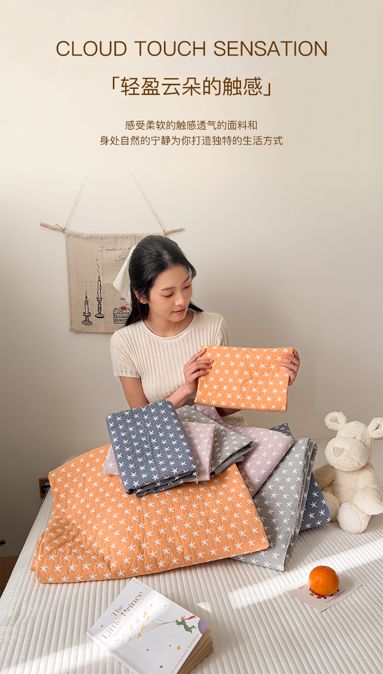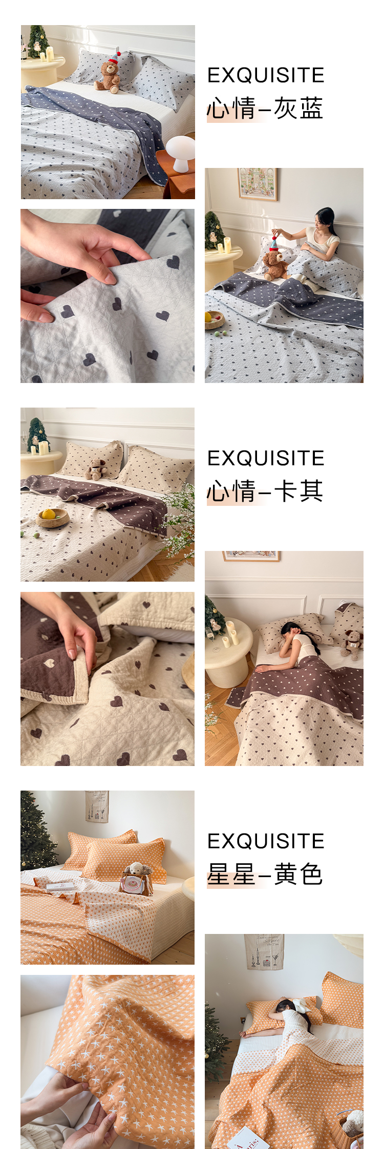 (总)沐瑟家纺 2026新款全棉四层纱布床盖-星星和心情系列,心情-粉色,心情-灰蓝,心情-卡其,星星-黄色,星星-灰色,星星-蓝色,星星-紫色,组合