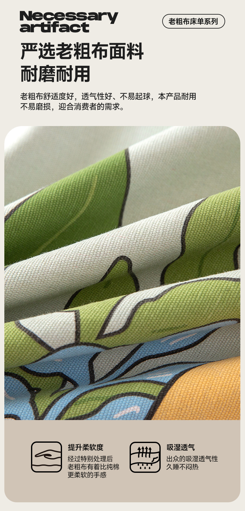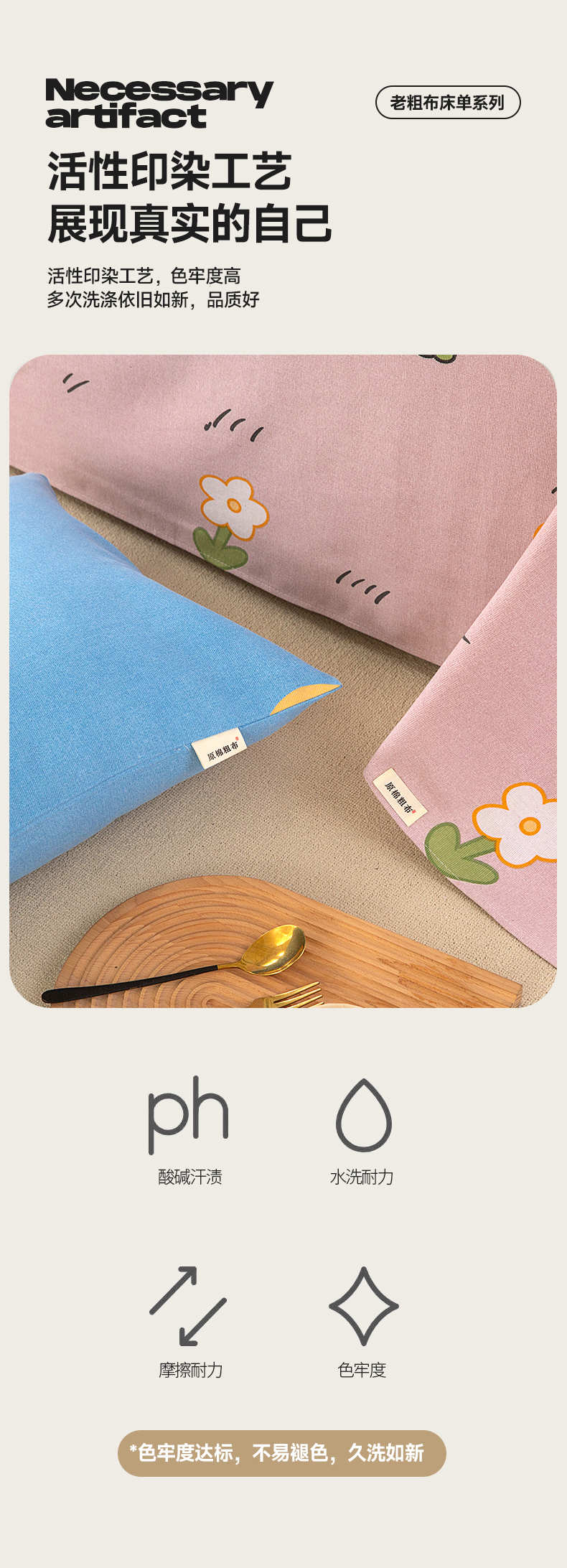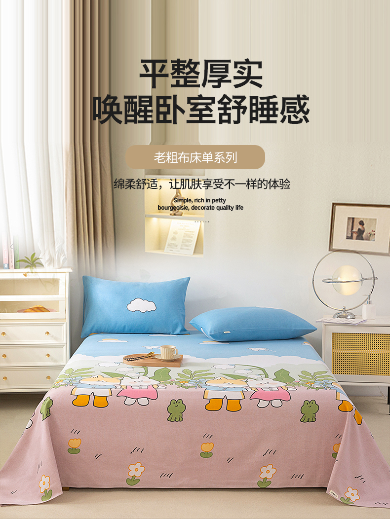 • 91家纺网 家纺一手货源 找家纺 棉乐町家居 2026新款原棉标印花老粗布床单 沐恋