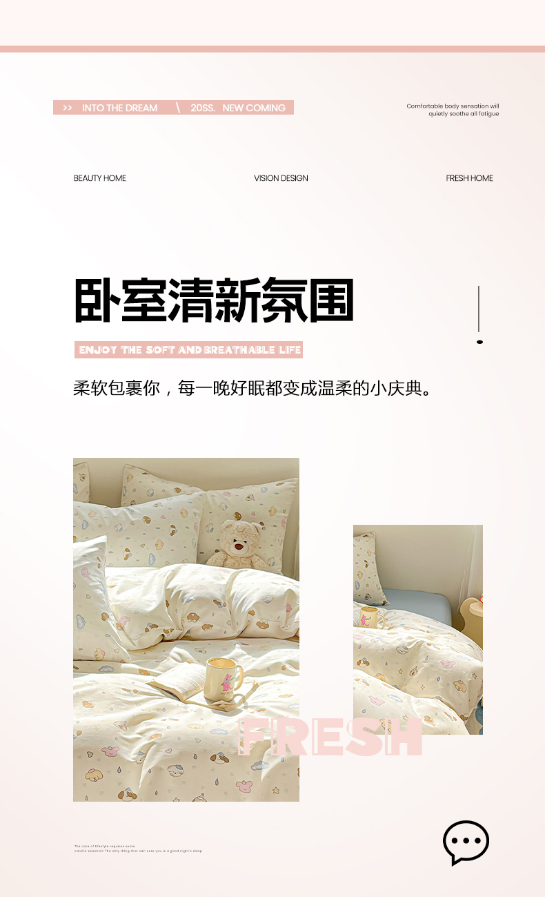 当前位置: 91家纺网 > 商品网购 > 床品套件 > 四件套 > 全棉普通四件套 > 吉象家纺 2026春夏新款全棉纯棉印花四件套 鼻涕狗