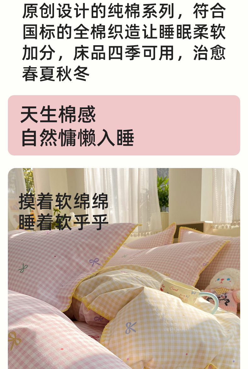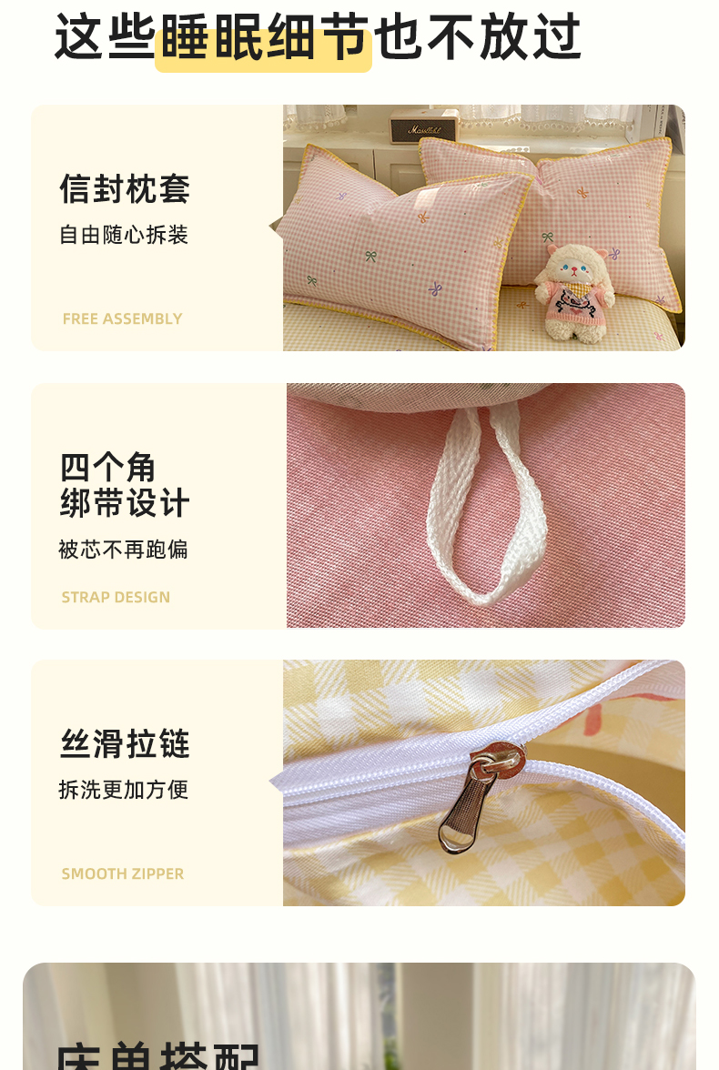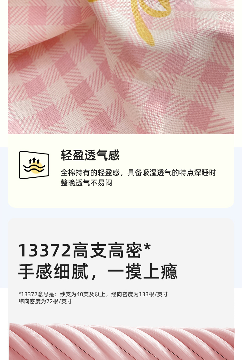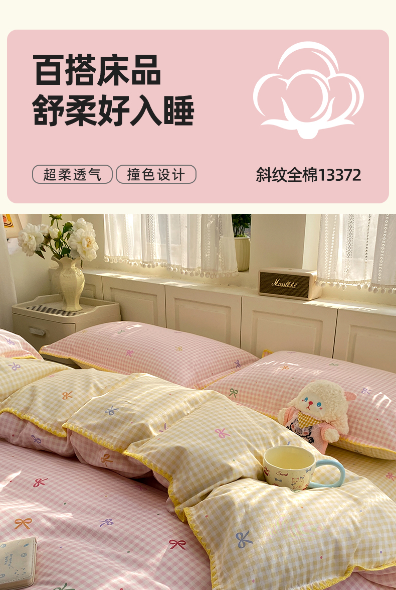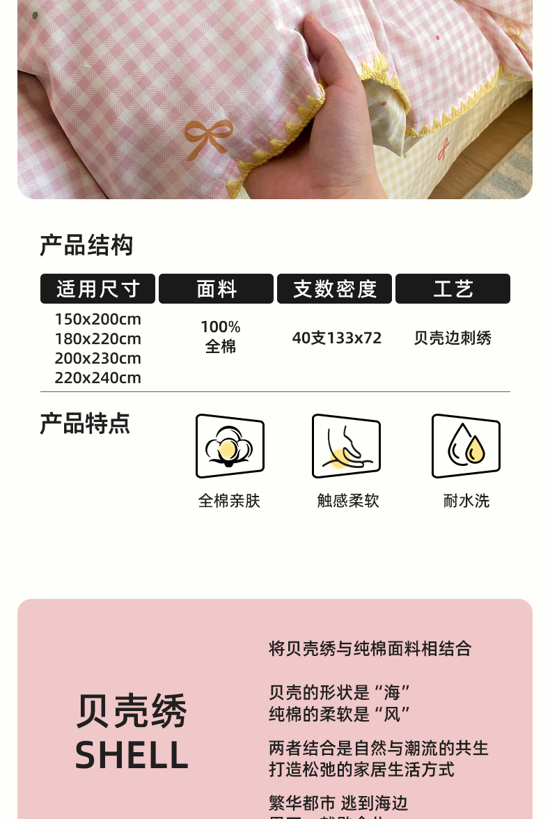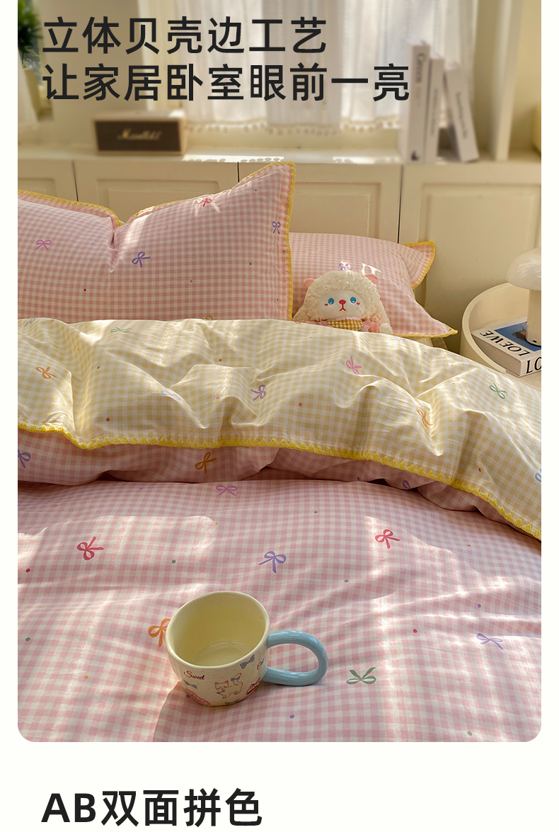 商品名称:浮光家居 2026新款全棉贝壳边纯棉单被套系列2 夏日恋格粉