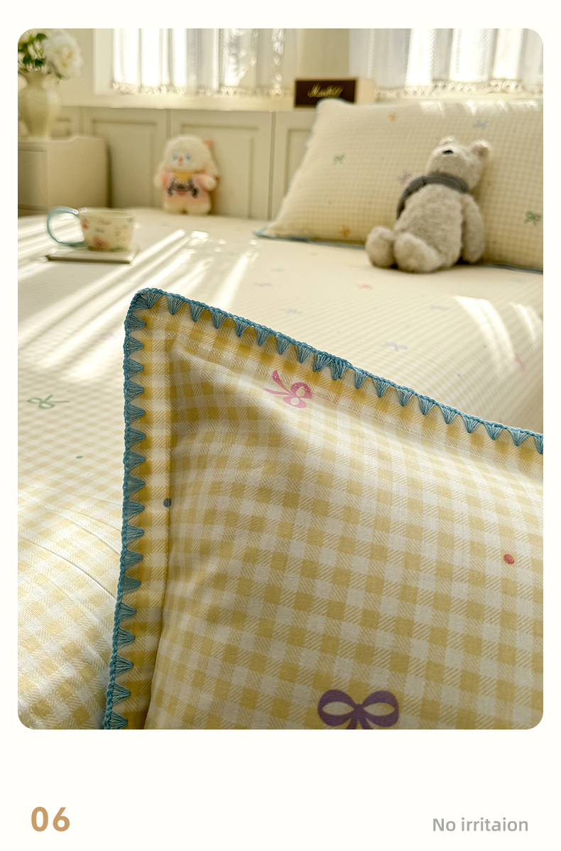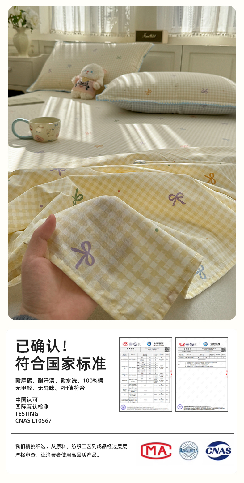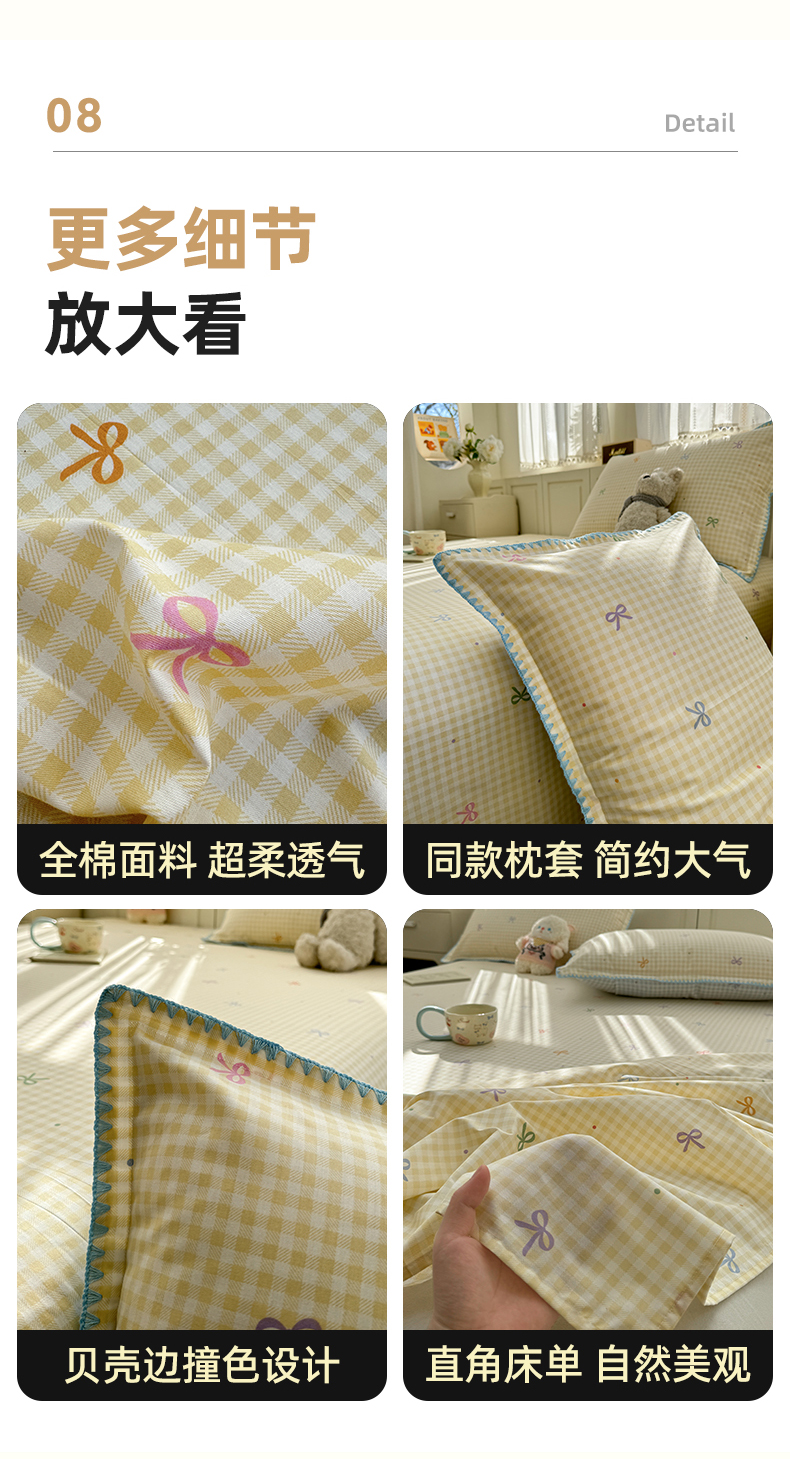 浮光家居 2026新款全棉贝壳边纯棉单床单系列2 夏日恋格黄