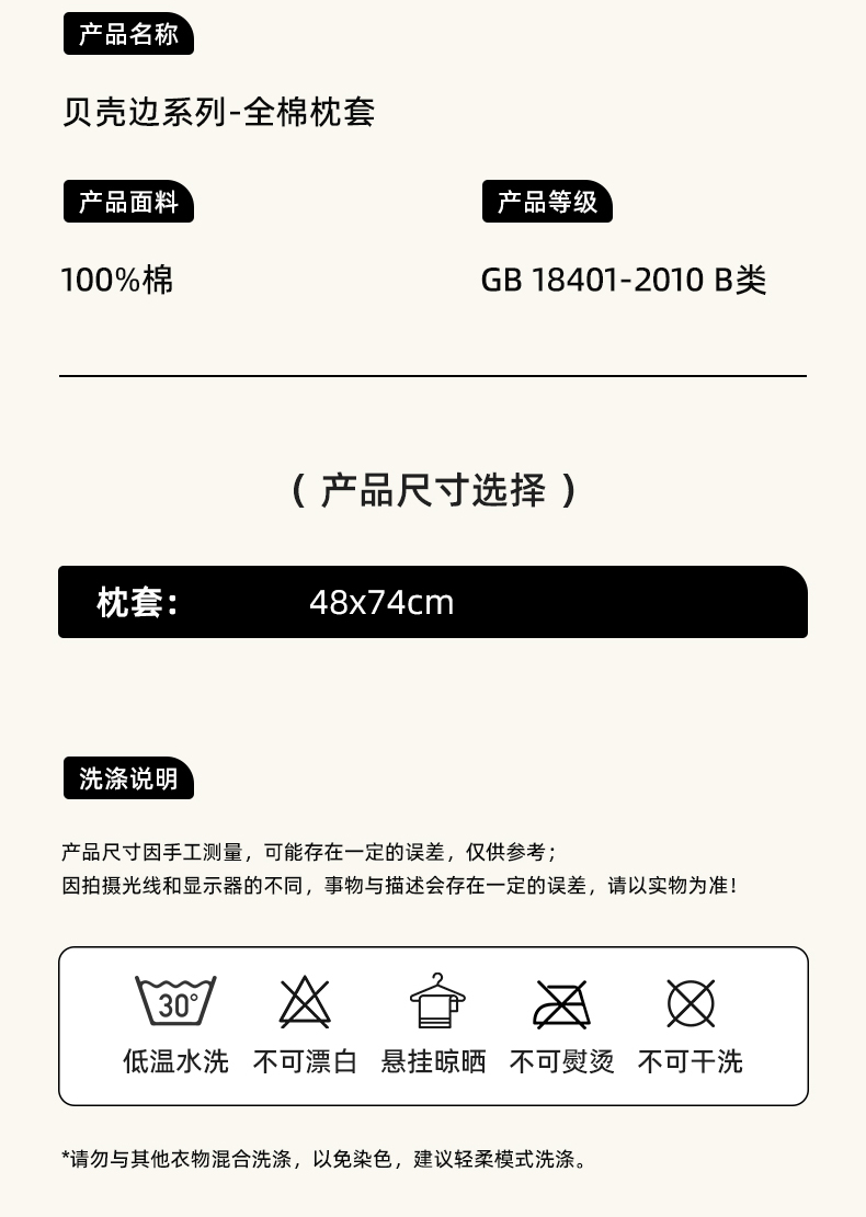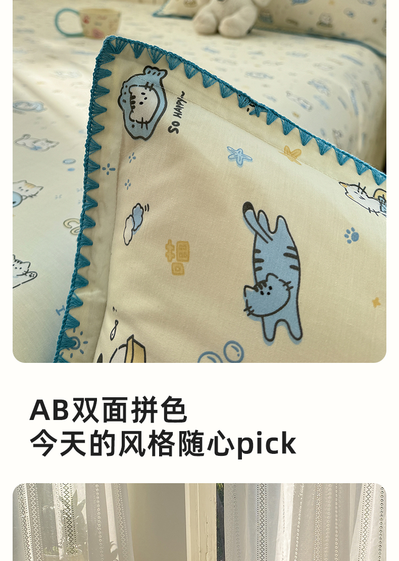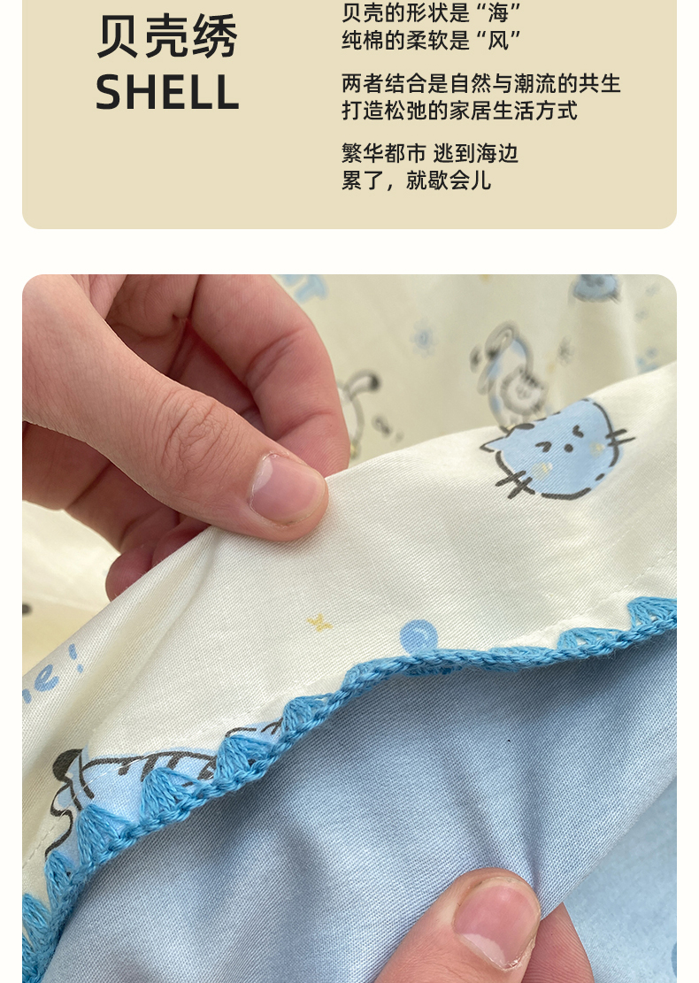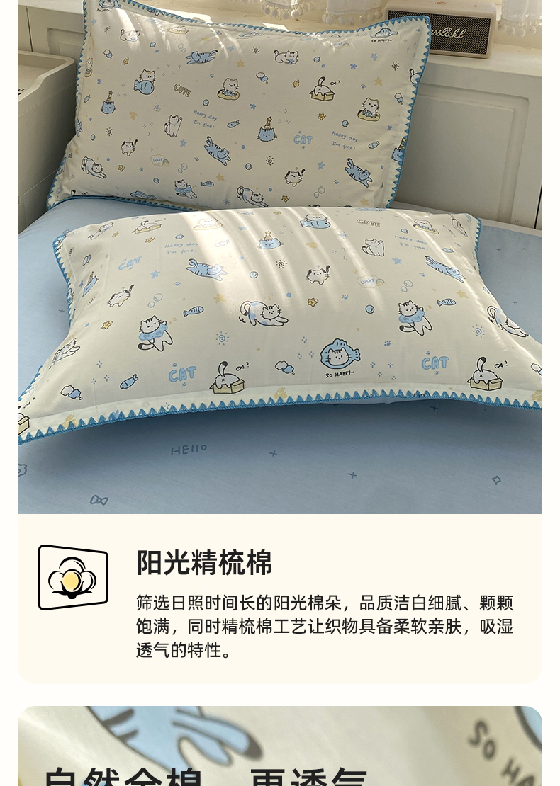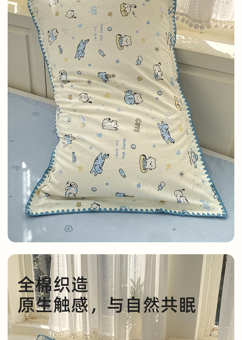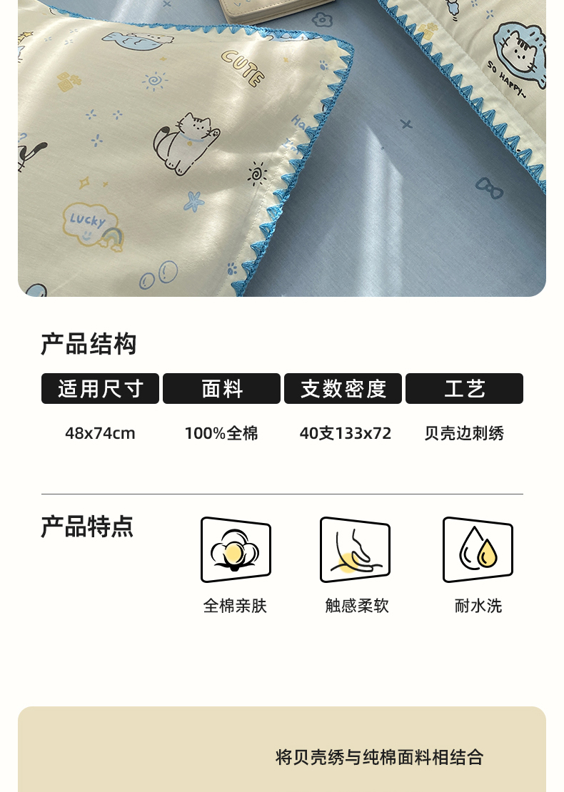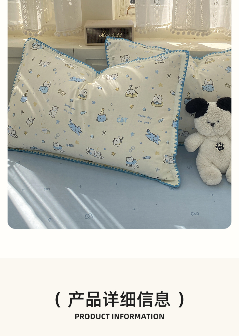 商品名称:浮光家居 2026新款全棉贝壳边纯棉单枕套系列2 机灵猫