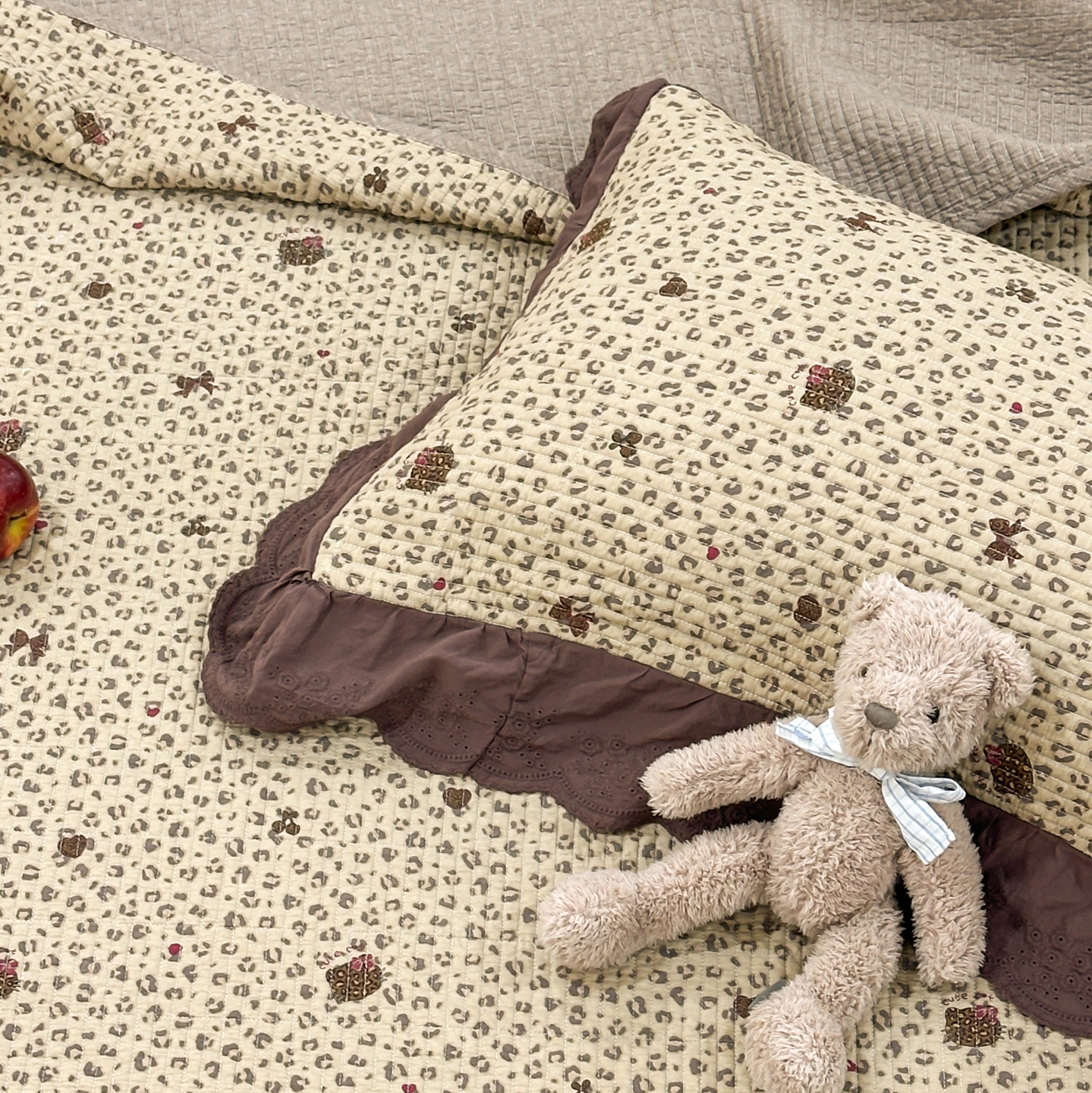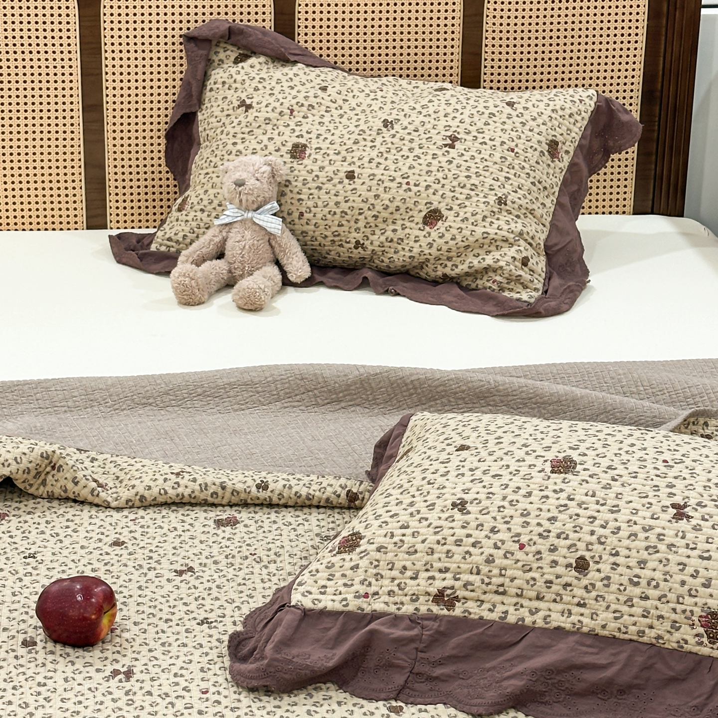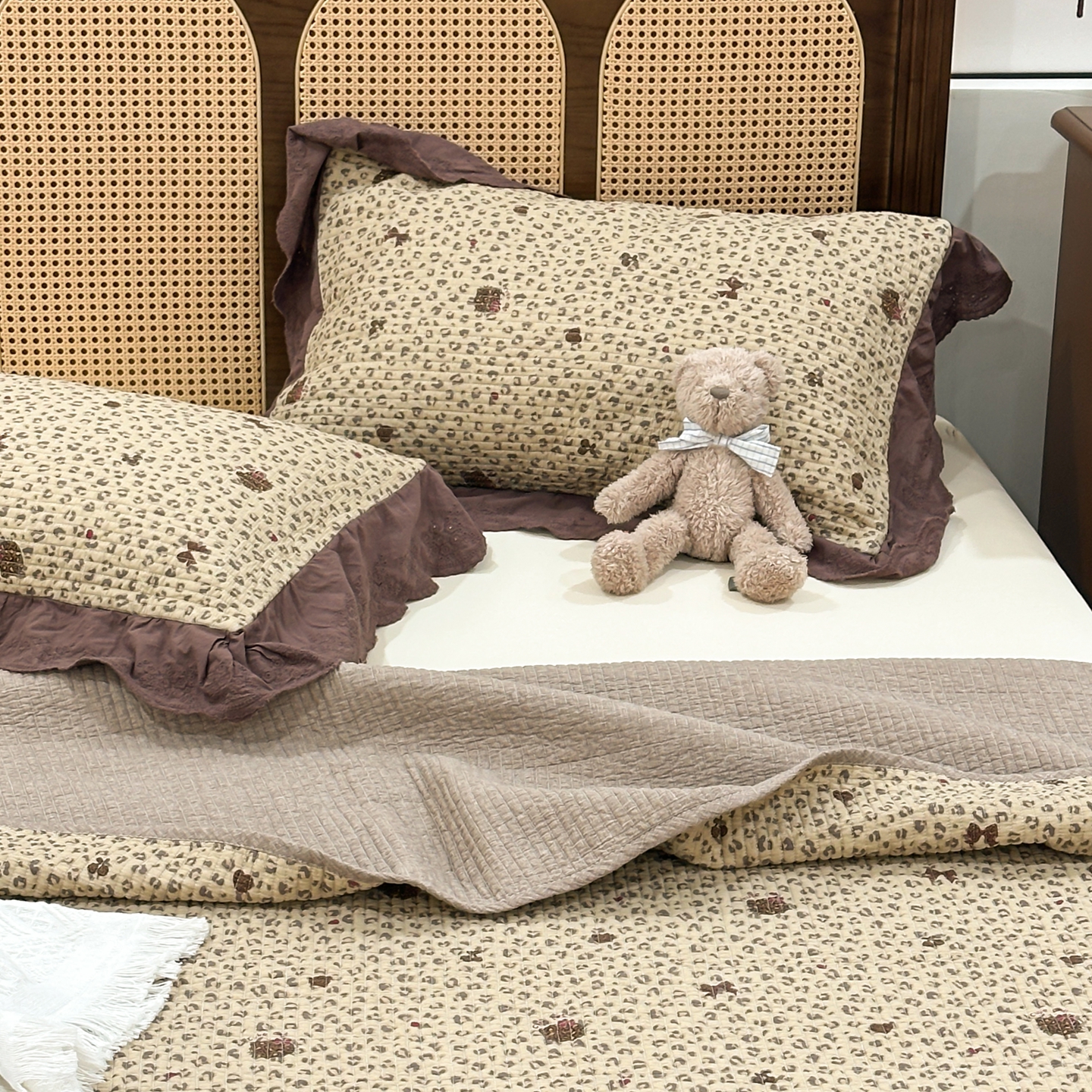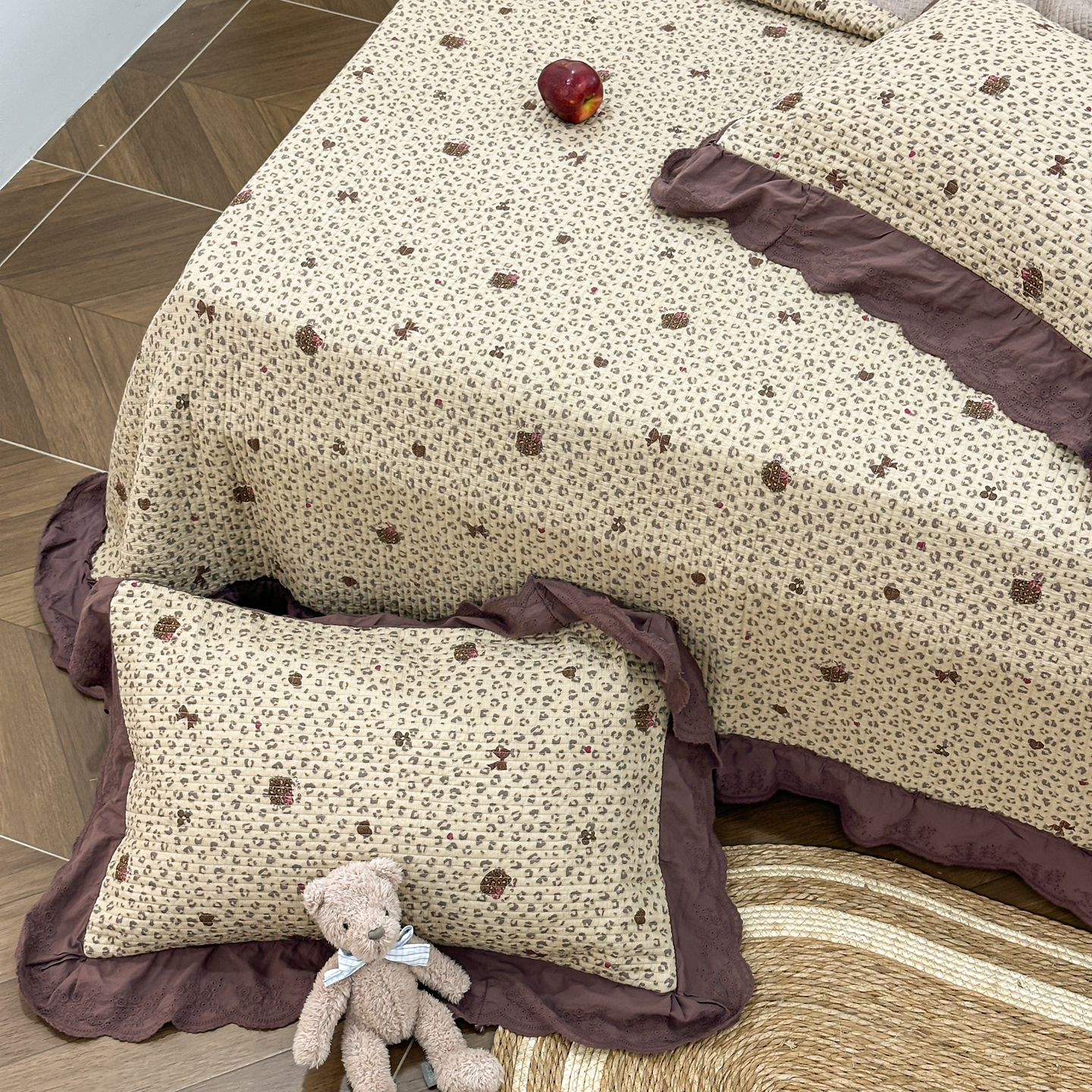 商品名称:床盖工厂店 2025新款法式双面全面填充棉花床盖三件套 千禧少女-咖