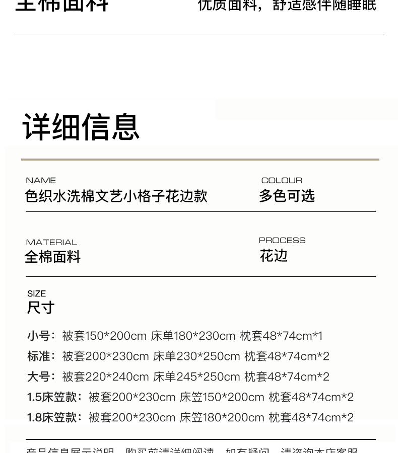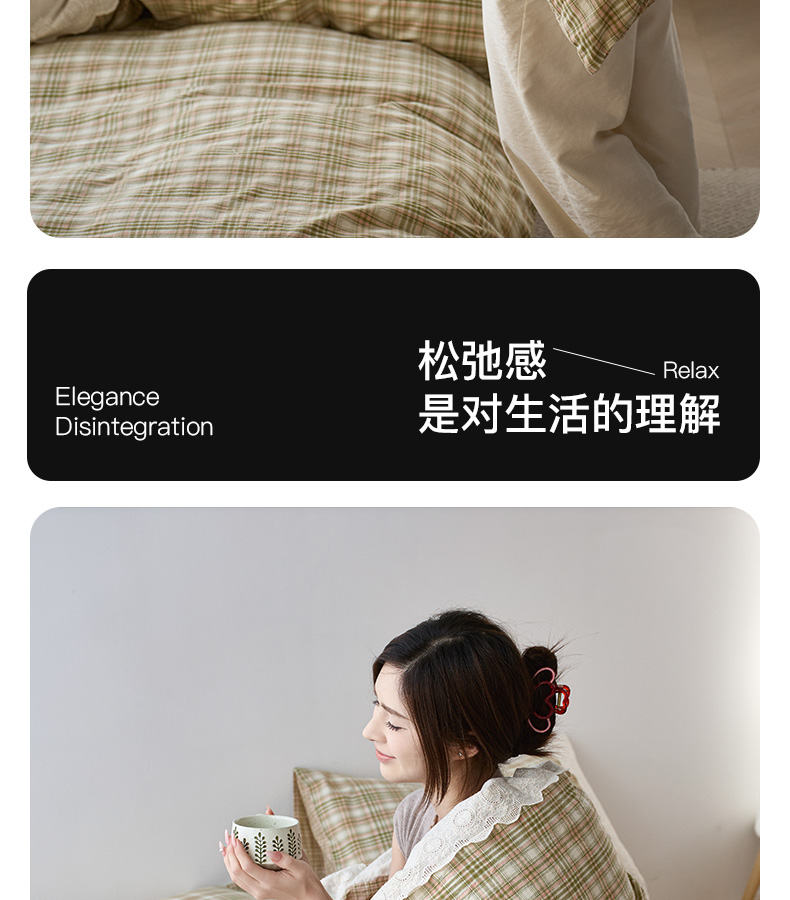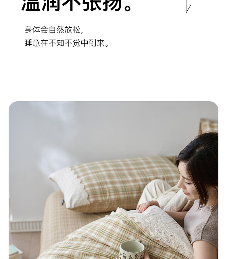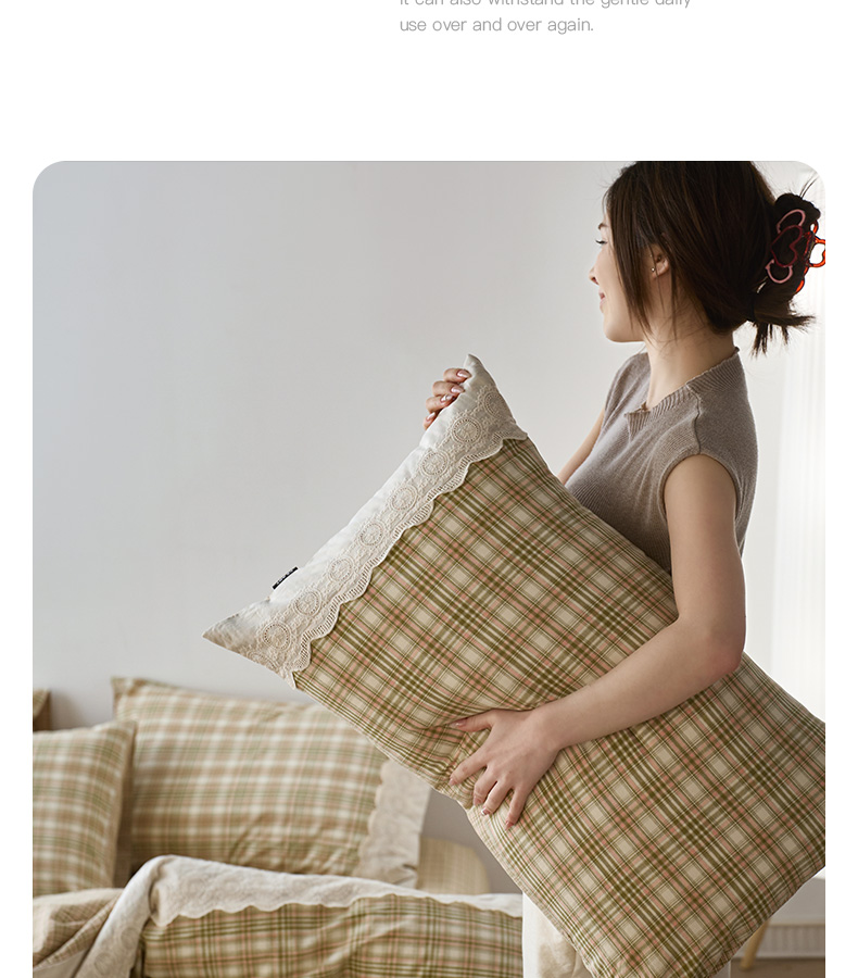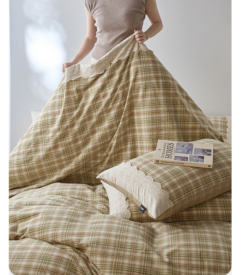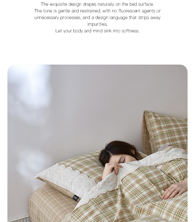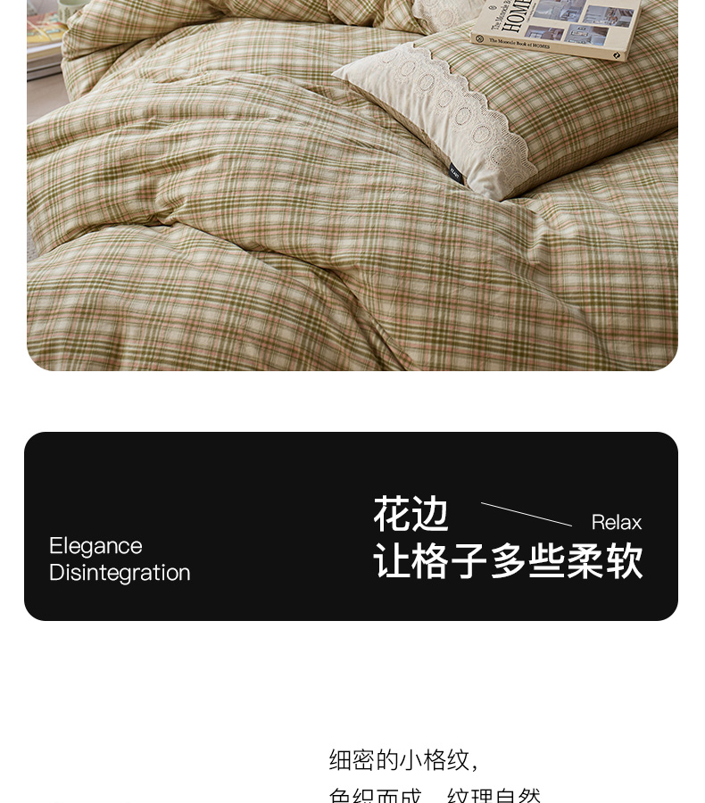 商品名称:卡姿家纺 2026春夏色织水洗棉文艺小格子花边款 利奥-沁绿