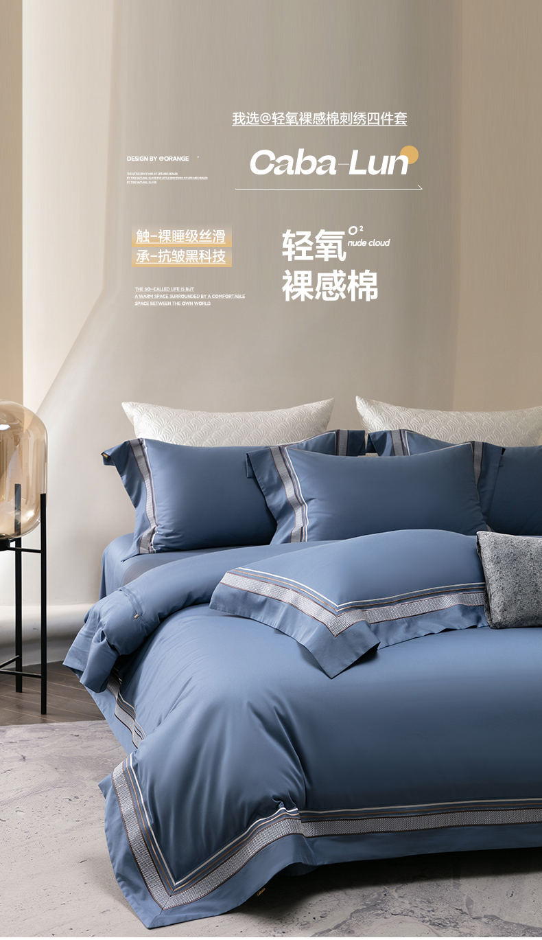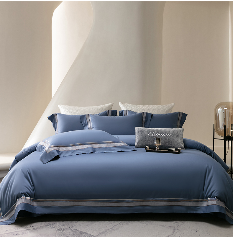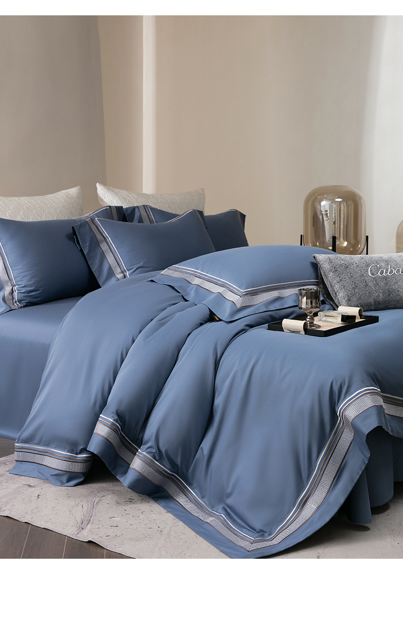 商品名称:卡巴伦家纺 2026新款简奢高定超细旦全棉纯棉绣边系列四件套-斯丹娜(会员:套件-20元 商品价格不得低于:标准:458元) 斯丹娜-净蓝