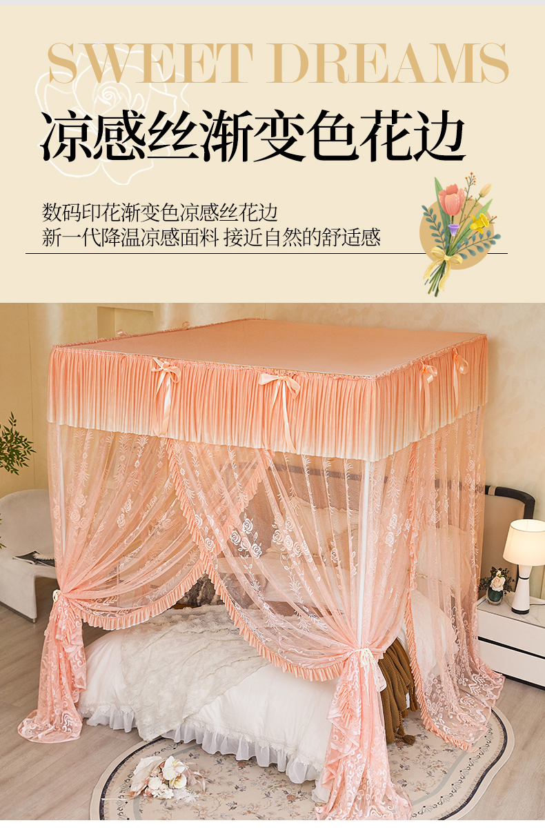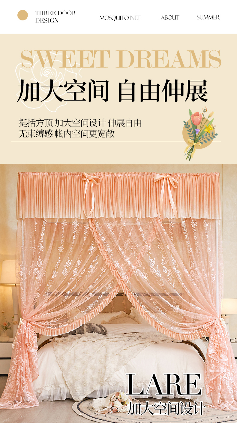 商品名称:(总)世婕 2026新款双丝提花落地花边蚊帐-浪漫满屋