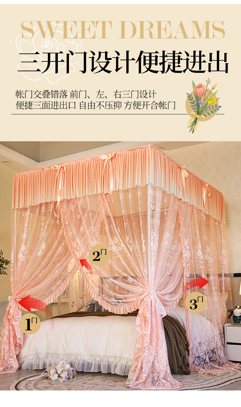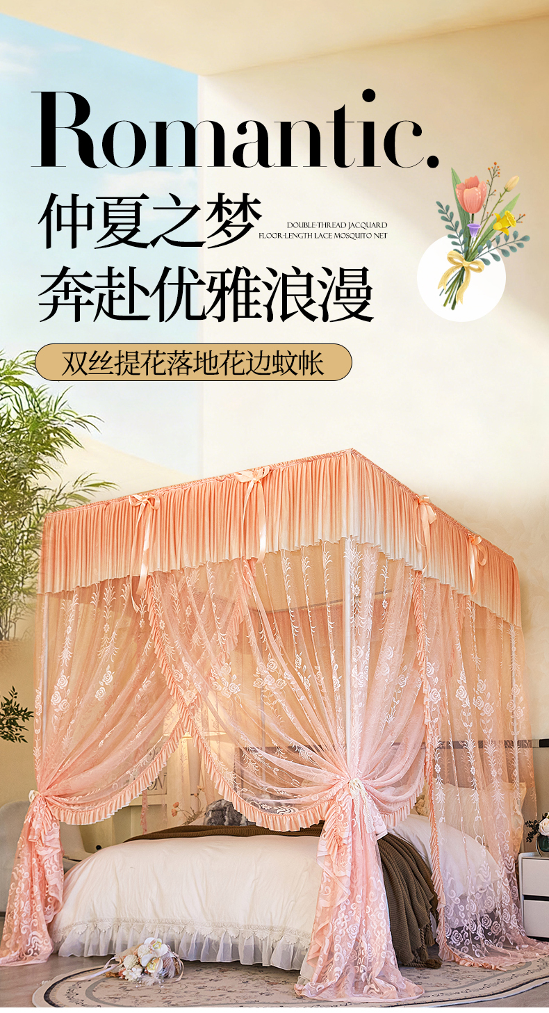 (总)世婕 2026新款双丝提花落地花边蚊帐-浪漫满屋
