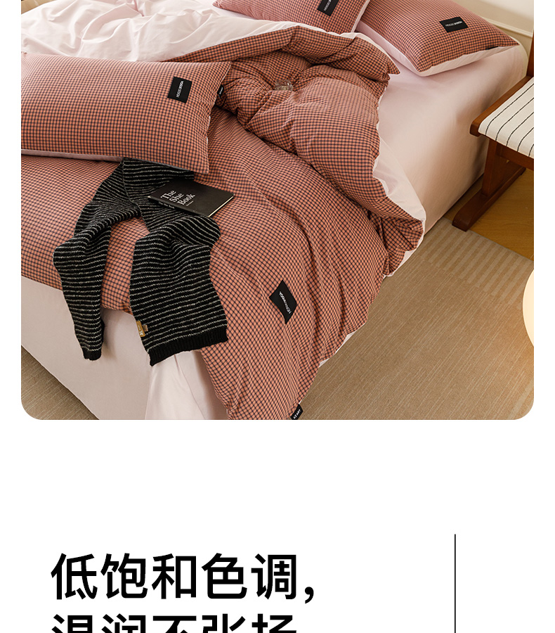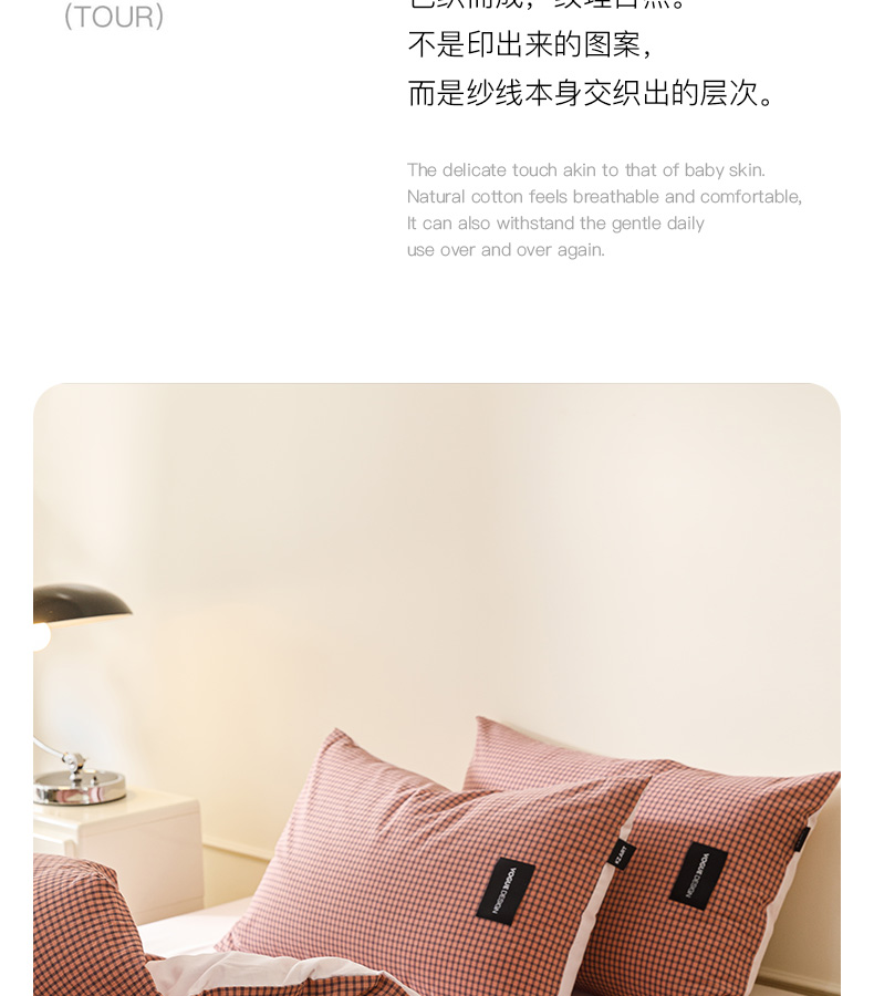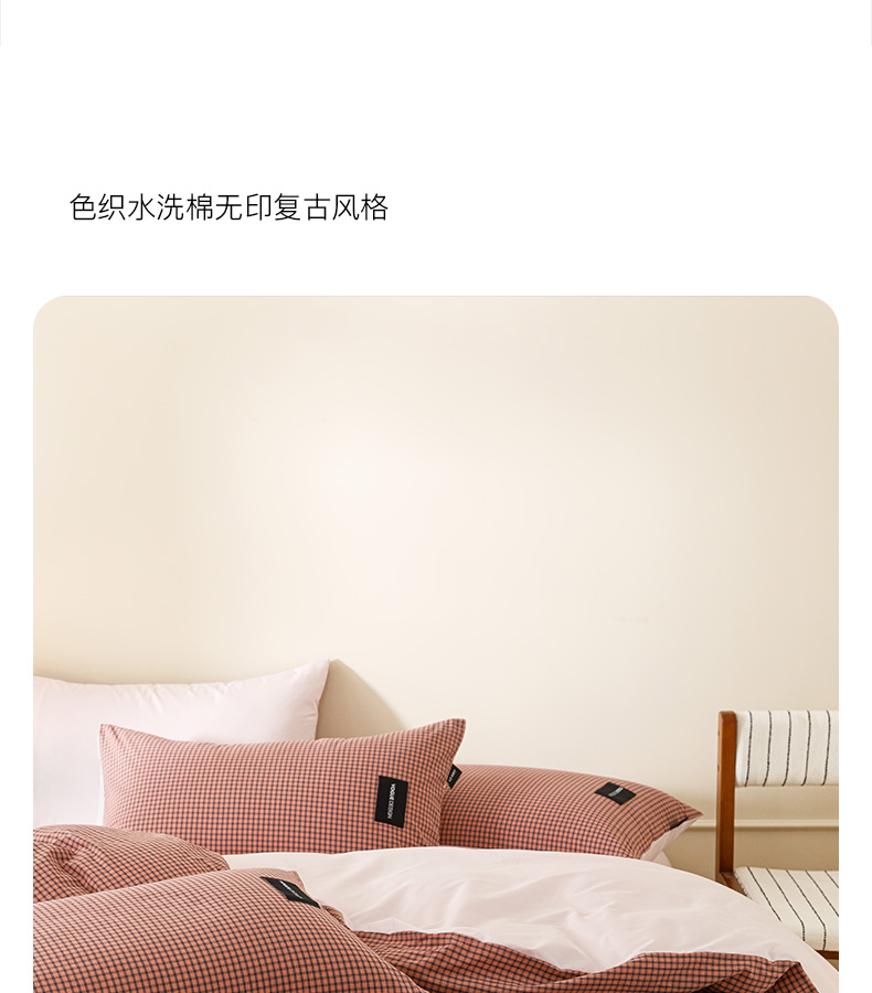 商品名称:卡姿家纺 2026春夏色织水洗棉无印复古风格 梵舍粉