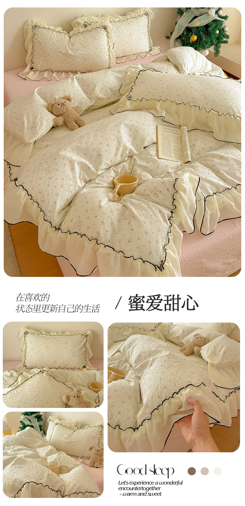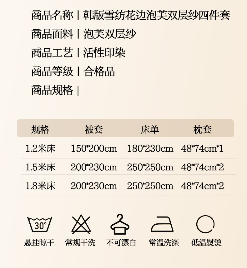 商品名称:吾欢心 2026春夏新款韩版雪纺花边泡芙双层纱四件套 赫本