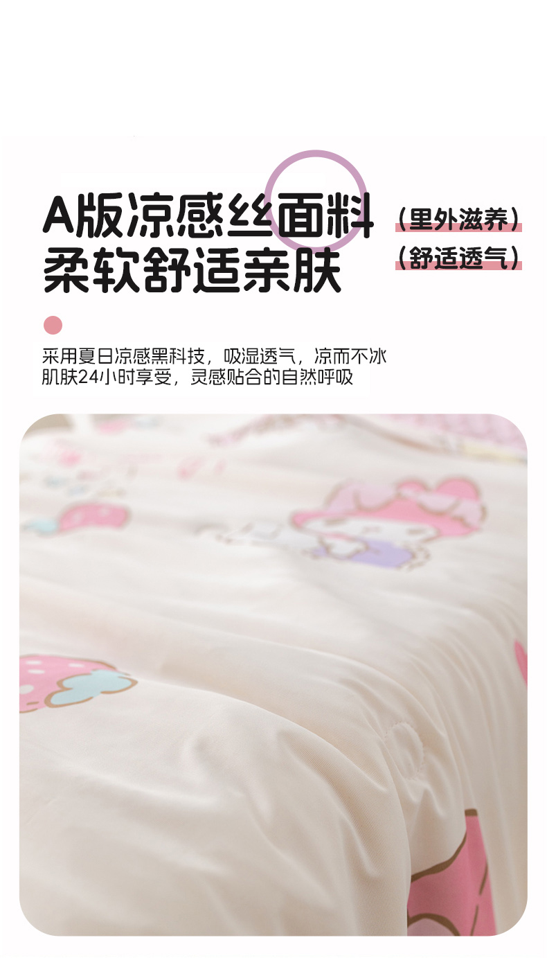 (总)心卓婴童馆 2026新款三丽鸥凉感丝冰豆豆被被子被芯-成人图,kitty猫,爱心库洛米,草莓美乐蒂,独角兽玉桂狗,牛奶库洛米,气球kitty猫,音乐帕恰狗