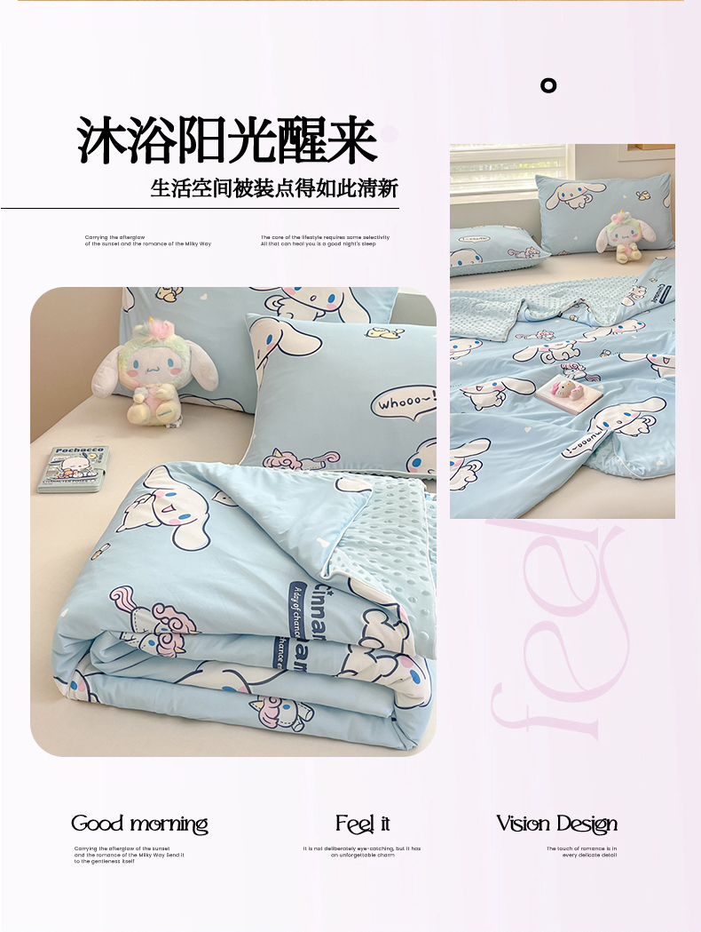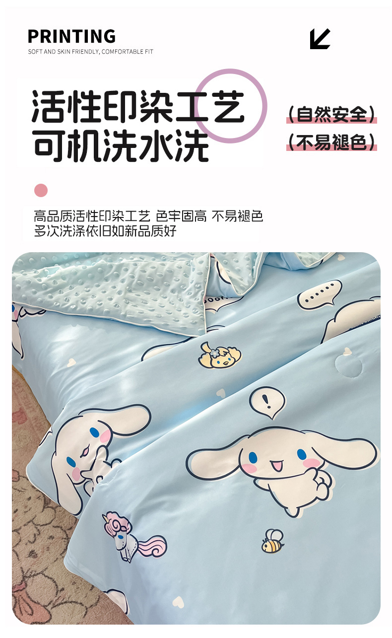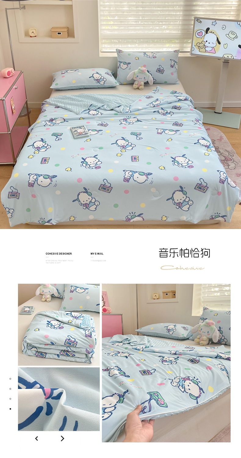 商品名称:心卓婴童馆 2026新款三丽鸥凉感丝冰豆豆被被子被芯-成人图 独角兽玉桂狗