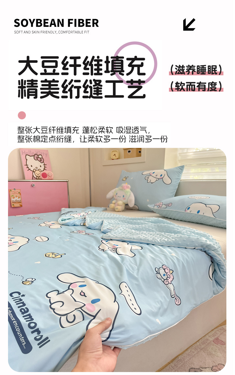 (总)心卓婴童馆 2026新款三丽鸥凉感丝冰豆豆被被子被芯-成人图,kitty猫,爱心库洛米,草莓美乐蒂,独角兽玉桂狗,牛奶库洛米,气球kitty猫,音乐帕恰狗