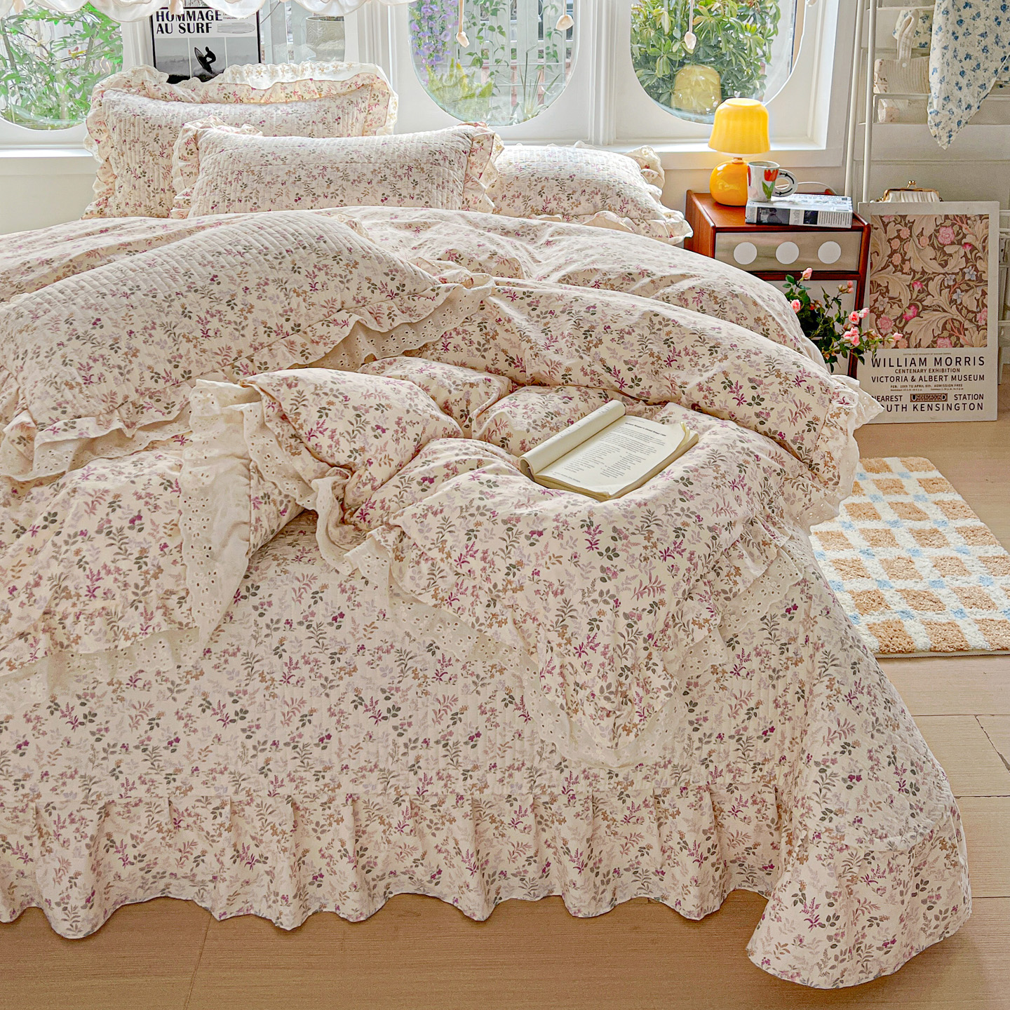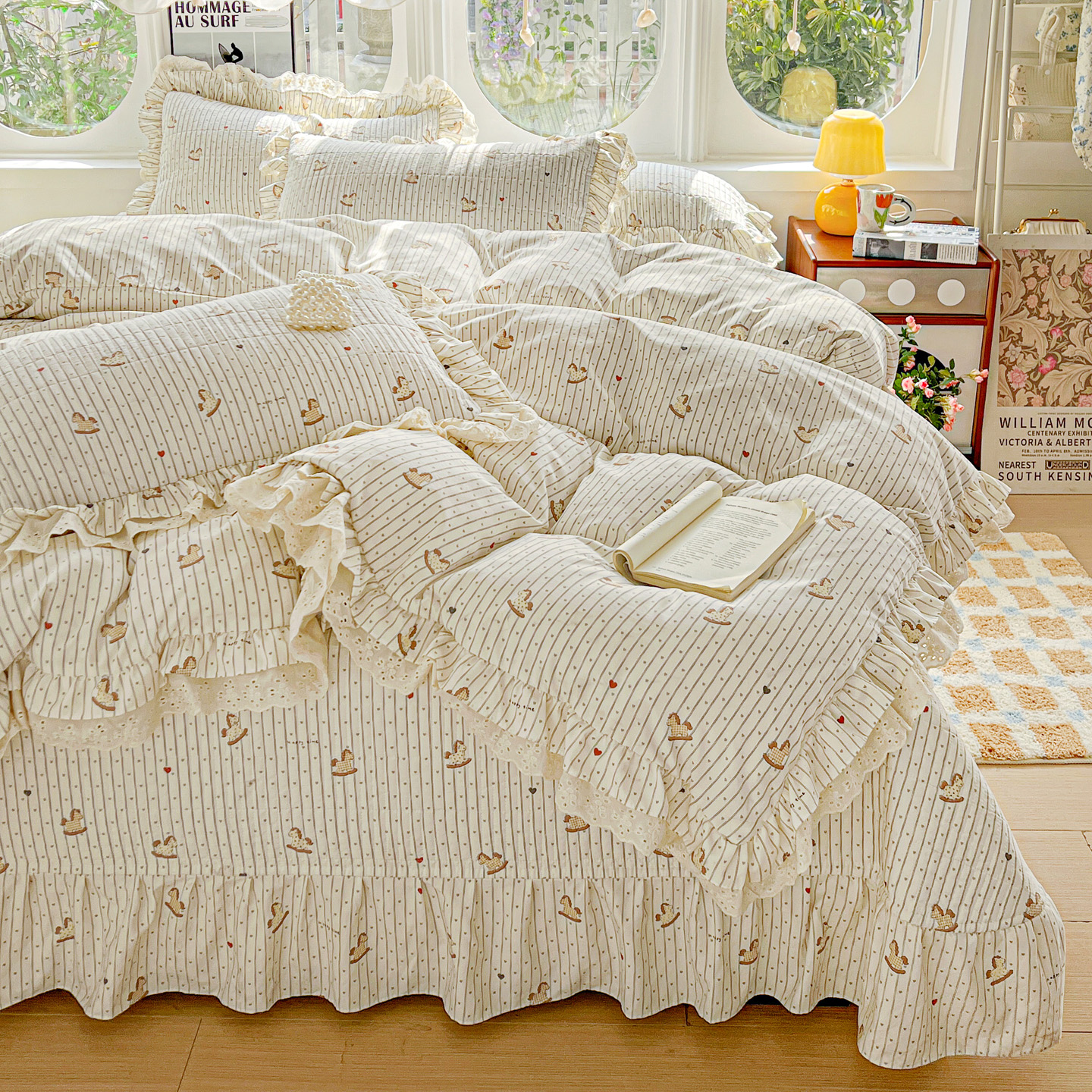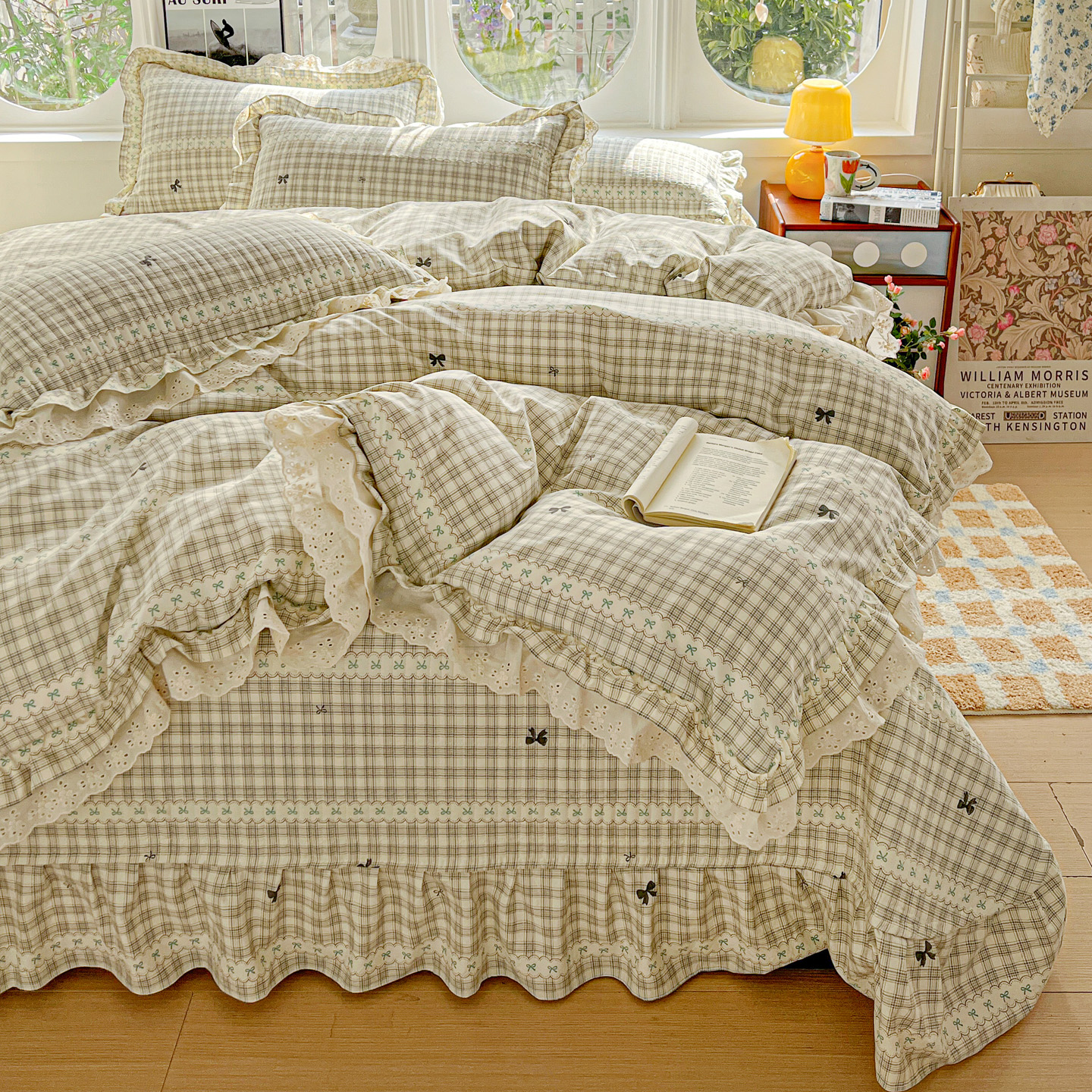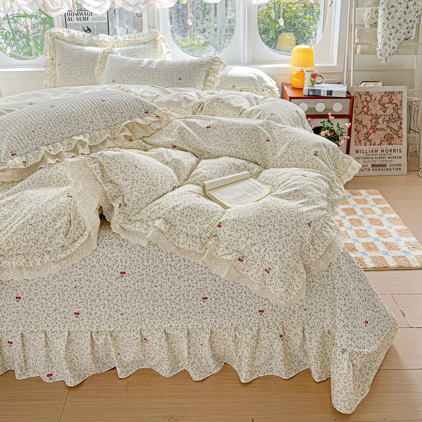梦莱斯 2026新款小清新可爱风纯棉花边床盖四件套 焦糖小玫瑰