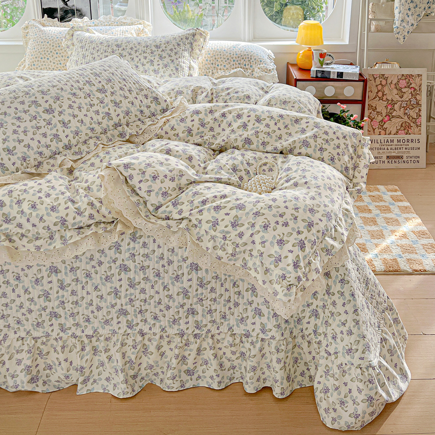(总)梦莱斯 2025新款田园碎花纯棉花边四件套-床盖款,采薇,花精灵,花开半夏,莱茵,恋爱季,绿叶仙踪,糜花似锦,糜花熙悦,秘境花园