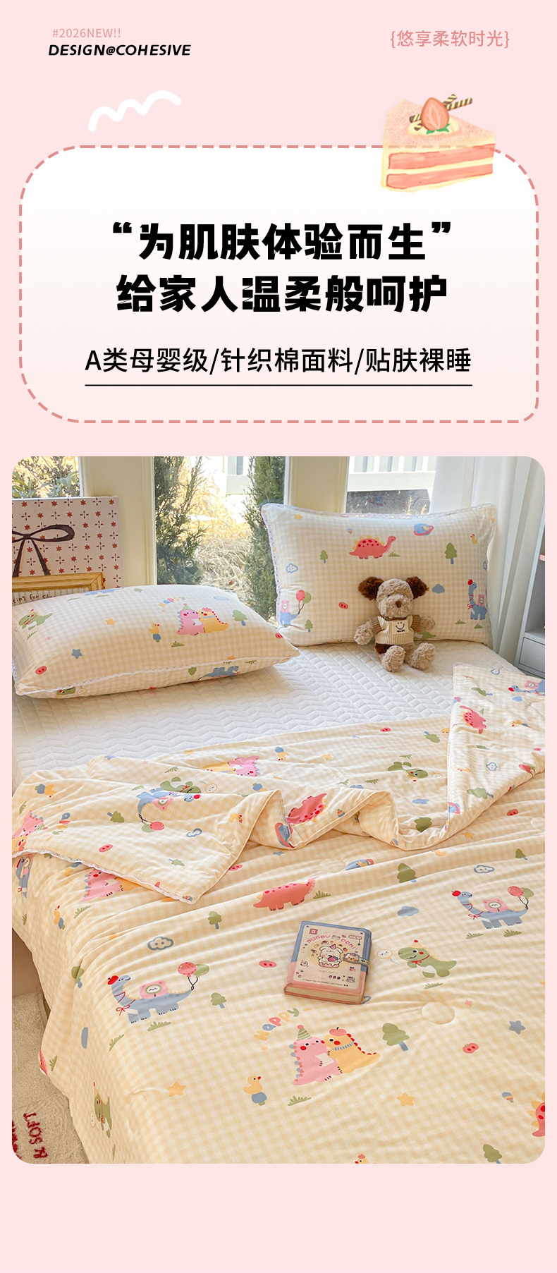 (总)心卓婴童馆 2026春夏新款云感棉四季被大豆被被子被芯,白底星星,彩色南瓜,点点熊,粉豹纹,粉格子小猫,红色樱桃,梦幻乐园,碎花小兔,棕色豹纹