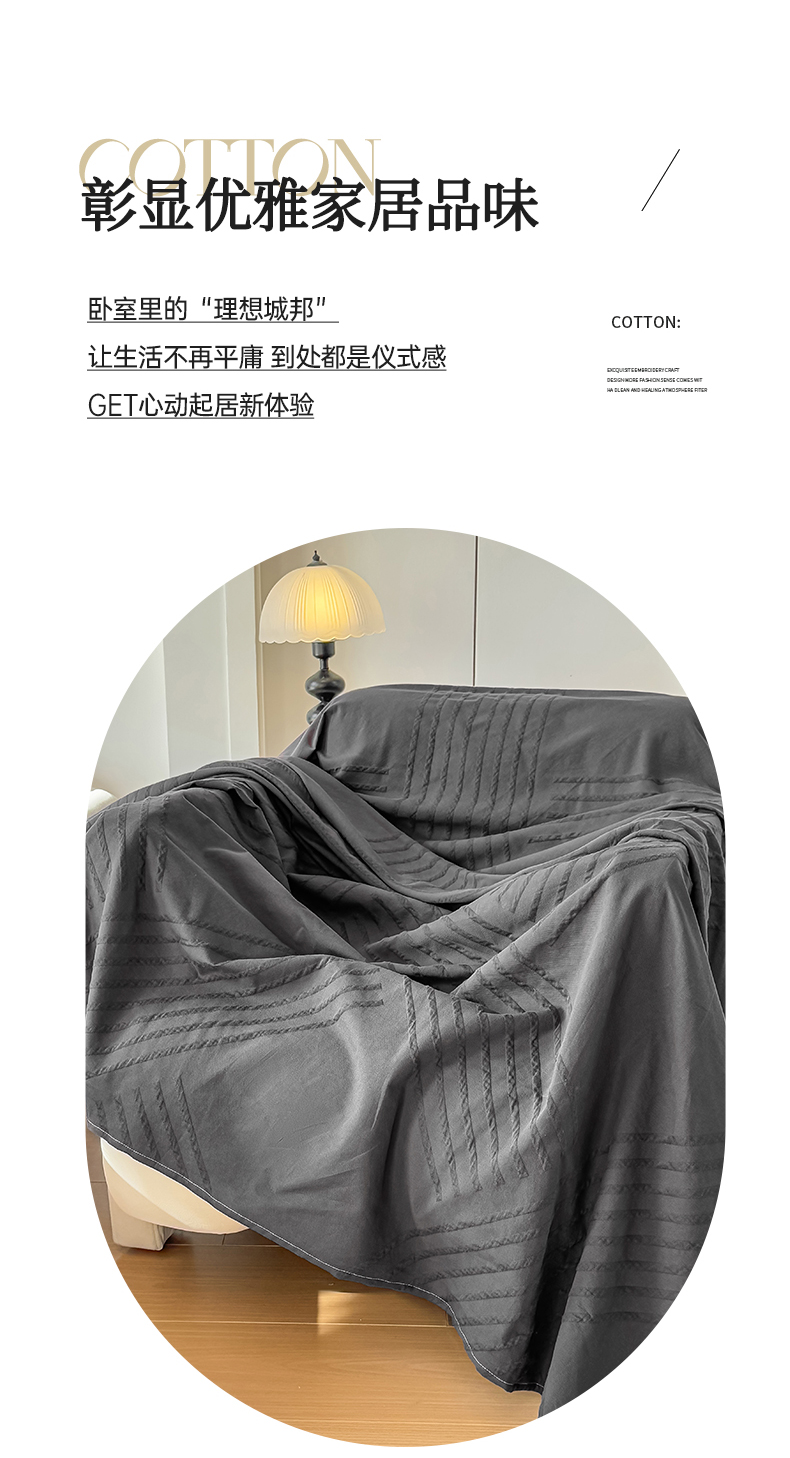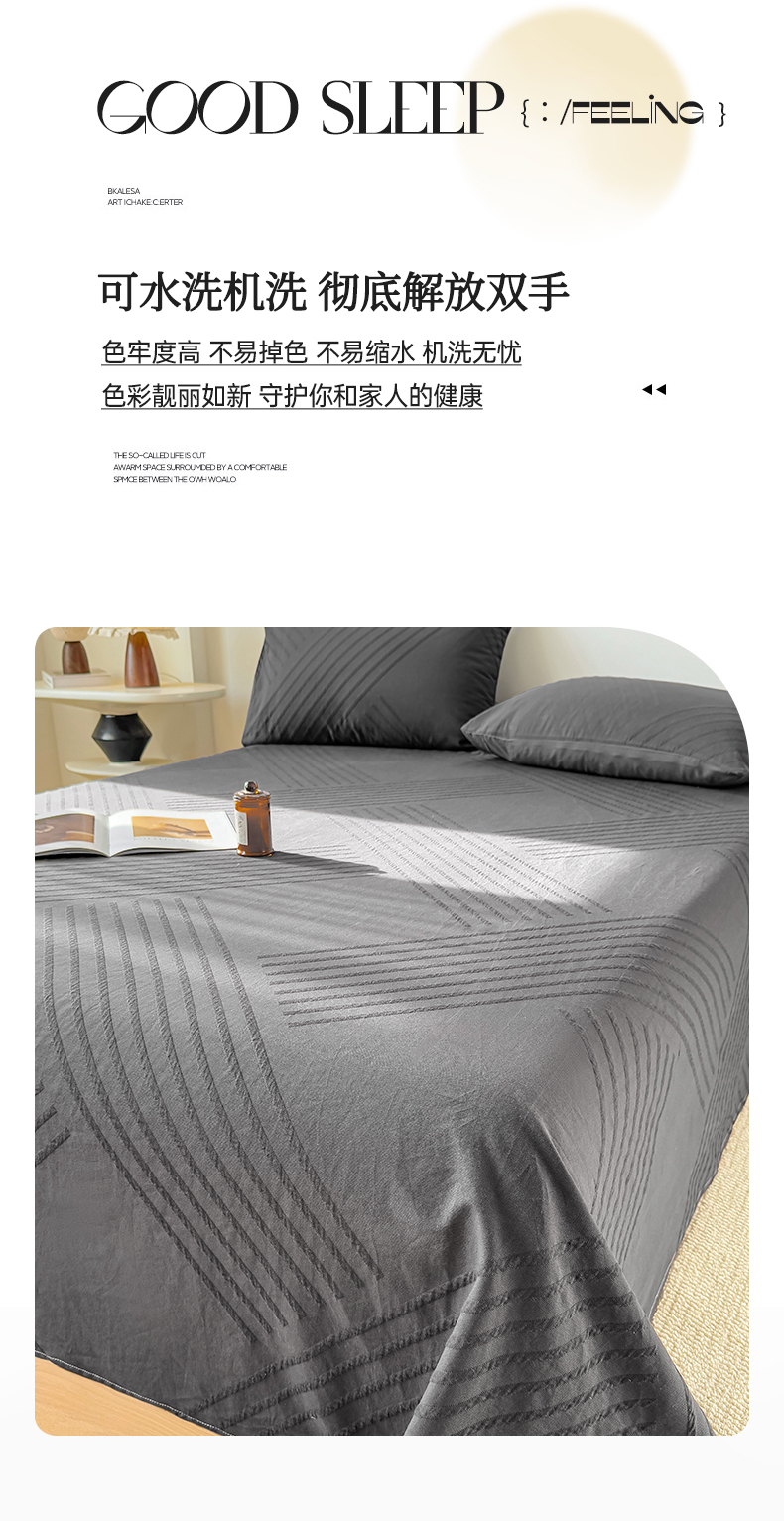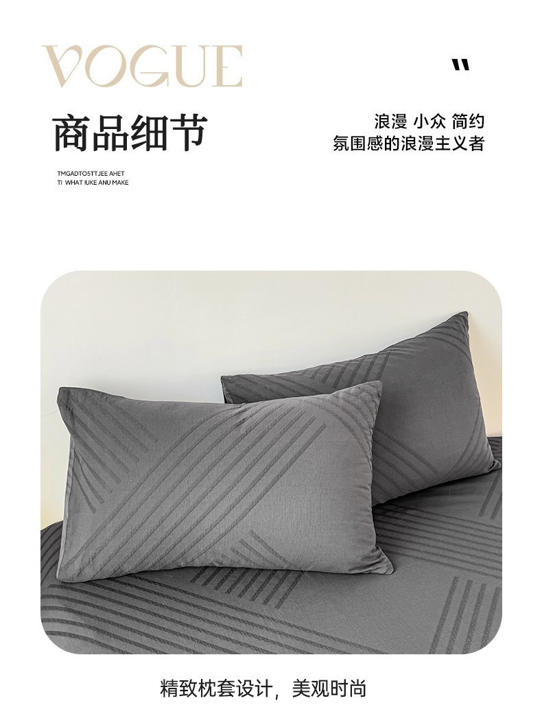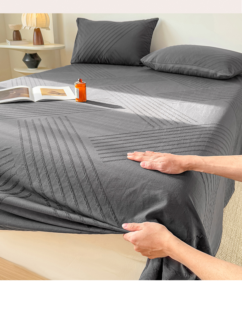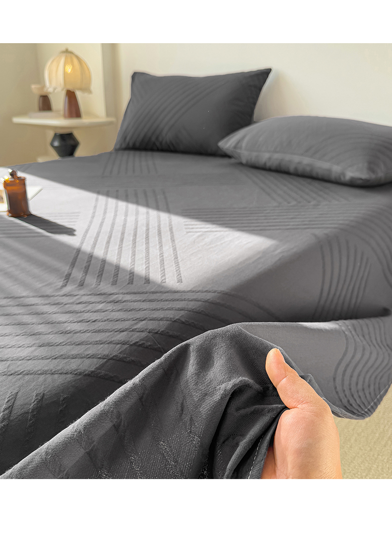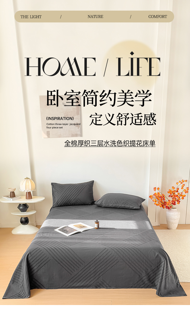 商品名称:女子家纺 2026新款全棉厚织三层水洗色织提花床单 云汐-素墨