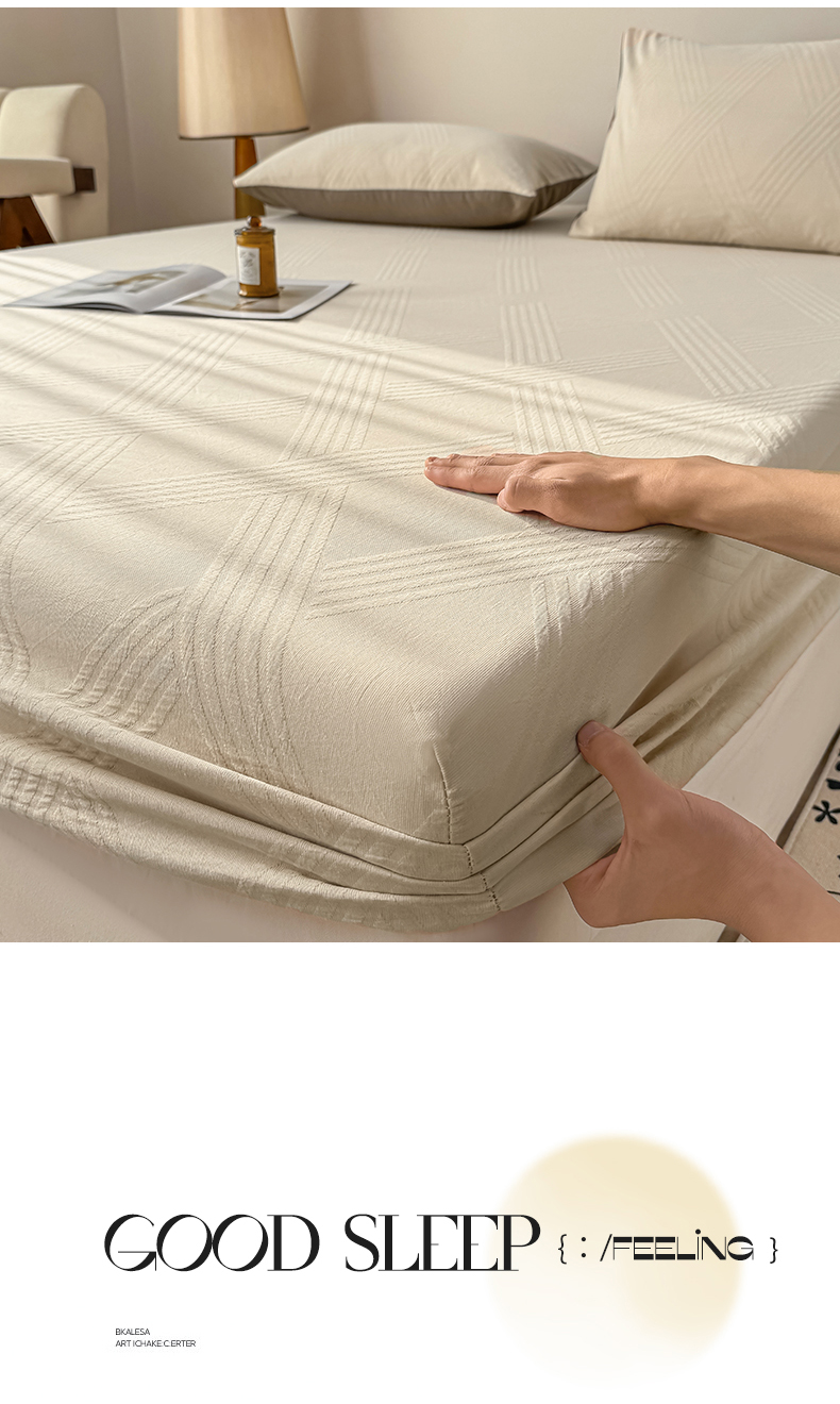 女子家纺 2026新款全棉厚织三层水洗色织提花床笠 维希-可可奶咖