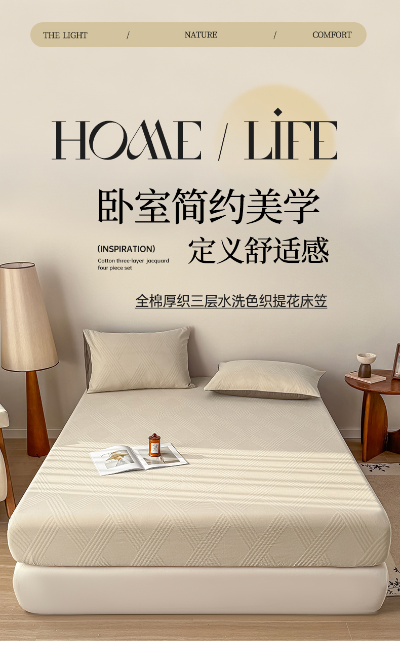 (总)女子家纺 2026新款全棉厚织三层水洗色织提花床笠,芳菲-可可奶咖,芳菲-素墨,芳菲-摩卡,芳菲-杏仁奶霜,罗格西亚-素墨,罗格西亚-杏仁奶霜,柔丝漫语-可可奶咖,柔丝漫语-摩卡,柔丝漫语-素墨,柔丝漫语-杏仁奶霜,维希-可可奶咖,维希-杏仁奶霜,云汐-可可奶咖,云汐-素墨,云汐-杏仁奶霜