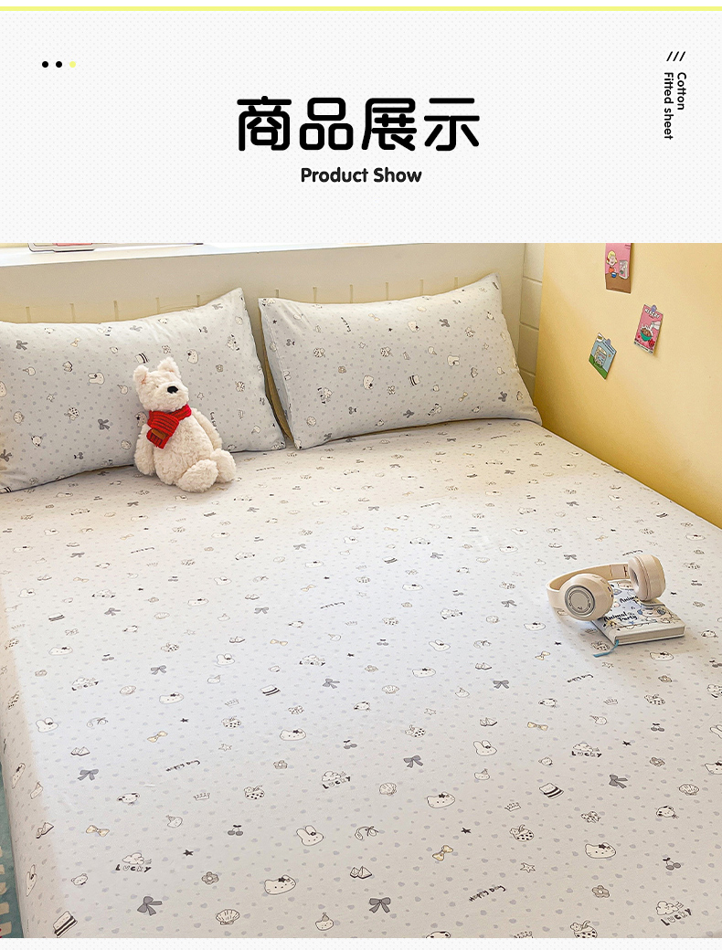(总)瑞莱 2026新款纯棉全棉单品印花卡通床笠枕套系列,圣诞狗,呆萌企鹅,繁星点点,蝴蝶结猫咪,千禧猫,软萌萌,童话,五线格,仙子,樱桃点点,樱桃格,樱桃猫咪,圆点点,绽放