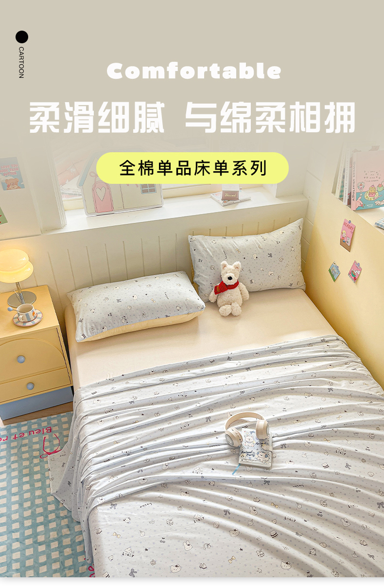 瑞莱 2026新款纯棉全棉单品印花卡通床单枕套系列 童话