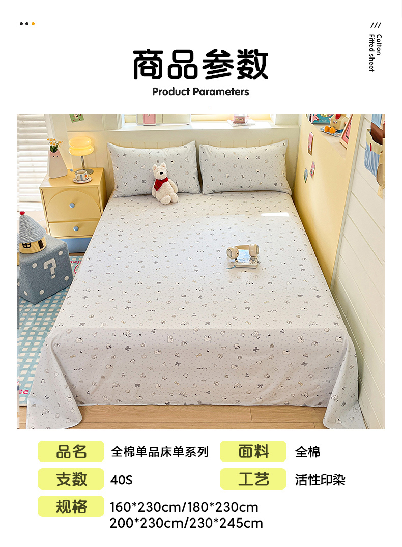 (总)瑞莱 2025新款开学季纯棉13372单品床单床笠,仙草,蘑菇屋,班尼狗,彼得兔,红色郁金香,漫画家,皮皮狗,咋肥事鸭,彩虹恐龙,赫本花,蓝爱心,少女心,桃桃女孩,(纯棉床单)