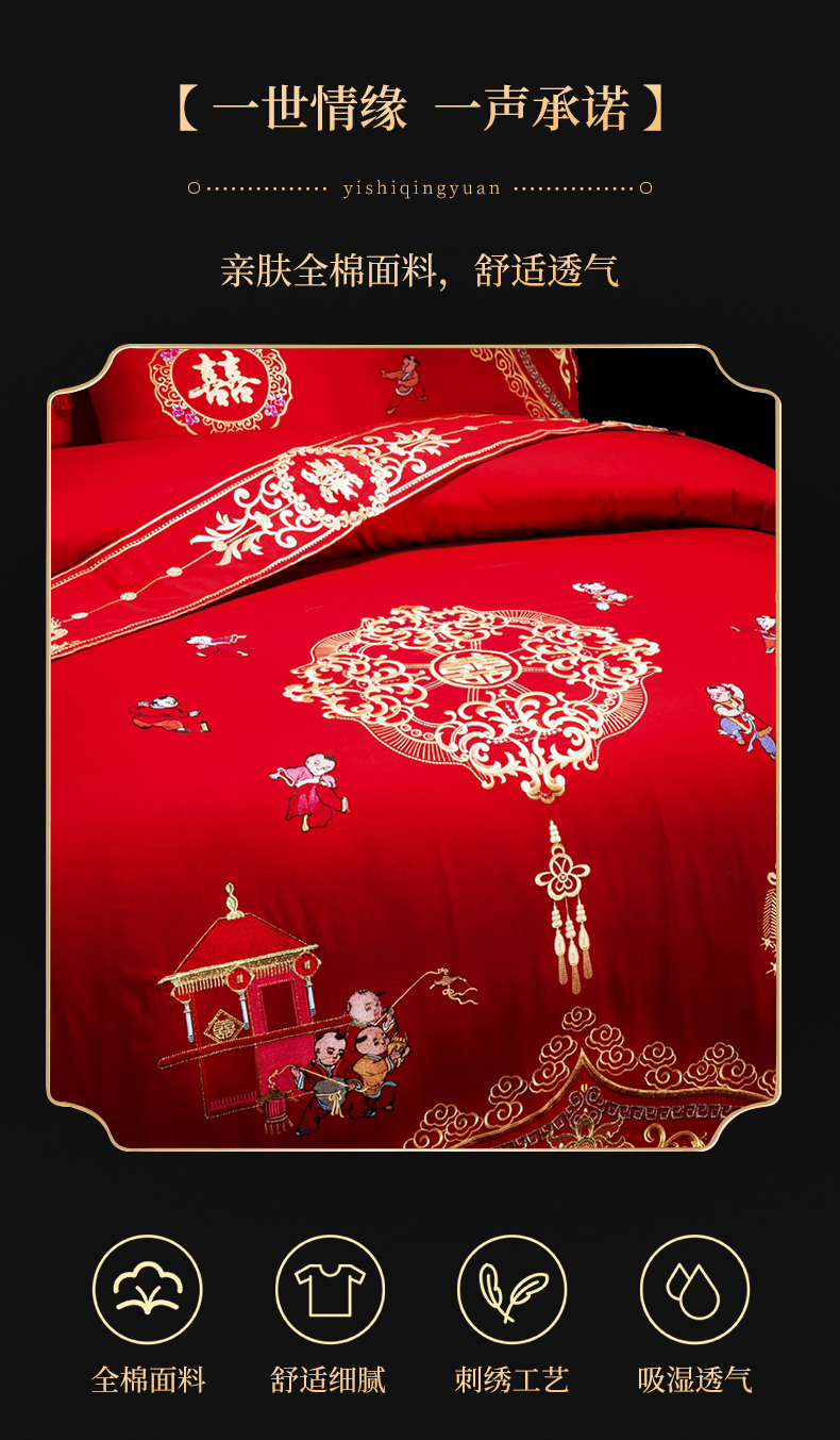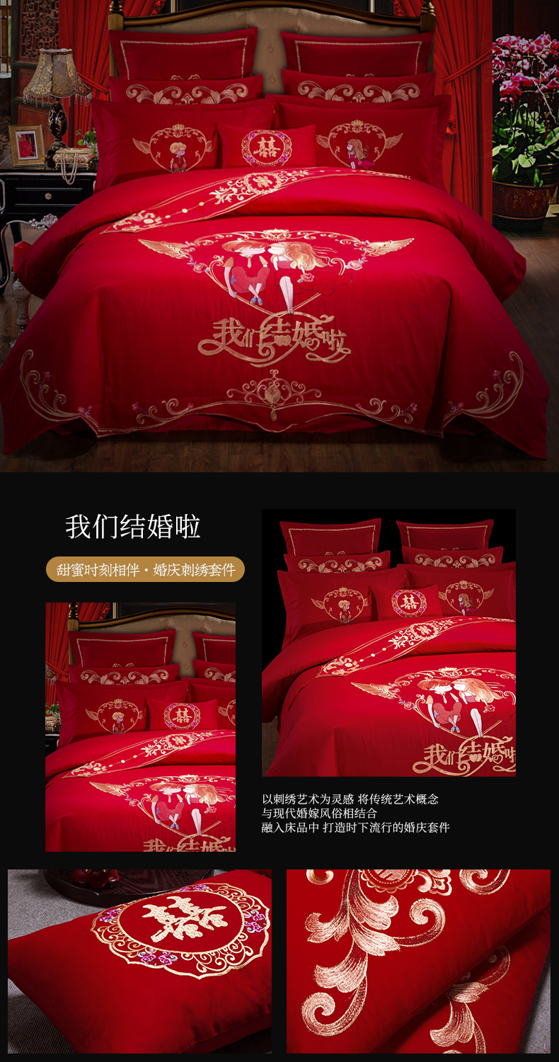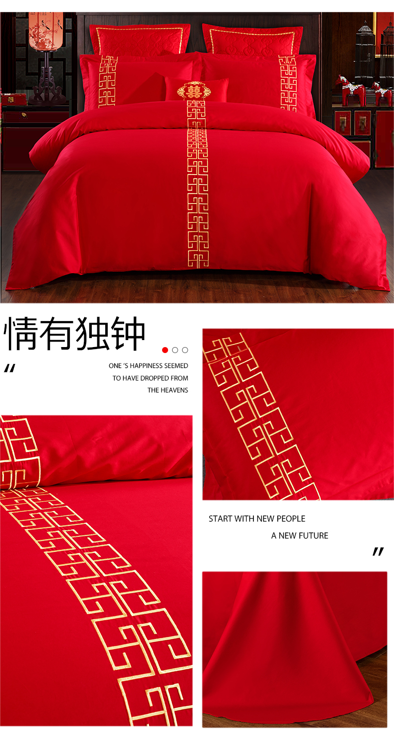 当前位置: 91家纺网 > 商品网购 > 床品套件 > 四件套 > 婚庆四件套 > 慕她家纺 慕她畅销款全棉纯棉婚庆四件套大红色刺绣结婚床上用品 百子迎亲