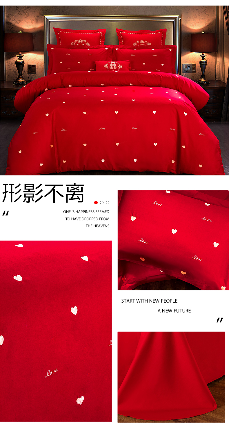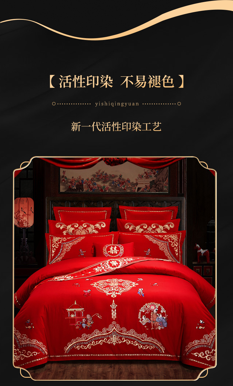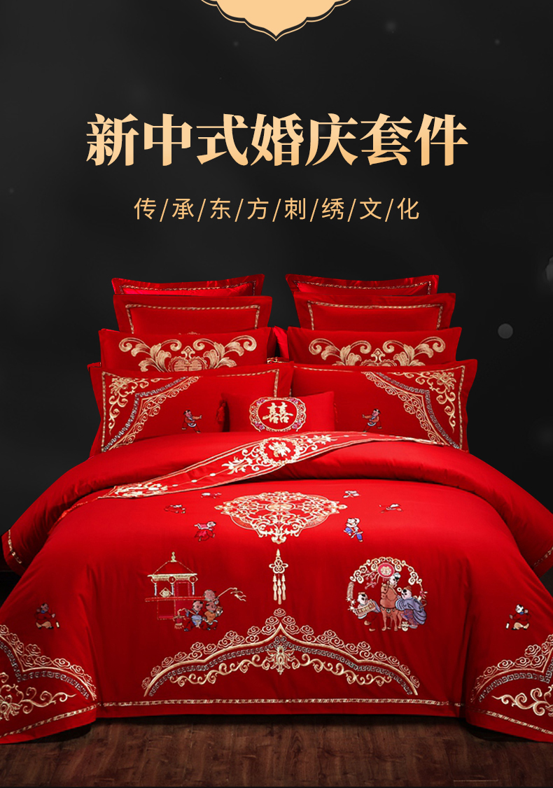 当前位置: 91家纺网 > 商品网购 > 床品套件 > 四件套 > 婚庆四件套 > 慕她家纺 慕她畅销款全棉纯棉婚庆四件套大红色刺绣结婚床上用品 百子迎亲