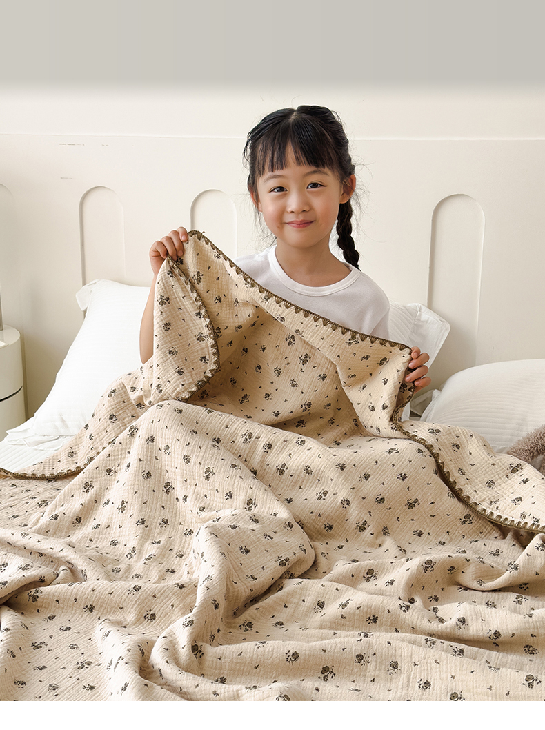 商品名称:布凡家居 2026新款全棉纯棉双层纱布毯夏被毯盖毯双层纱浴巾毯 皱皱纱-碎时光