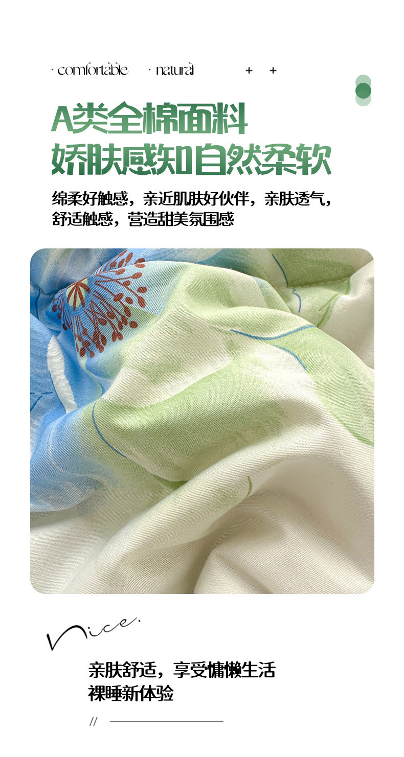 寝美资家居 2026新款A类里外全棉夏凉被四件套-风格一 花期蓝