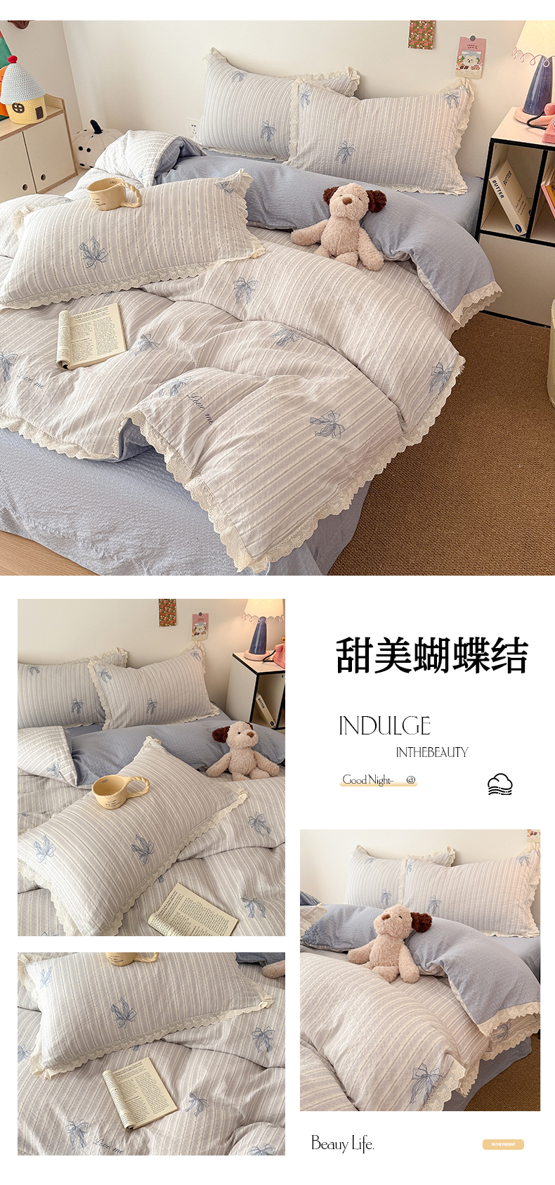 (总)吾欢心 2025新款糯小棉立体蝴蝶花边四件套-蝶恋花系列,蝶恋花白,蝶恋花粉,蝶恋花黄,蝶恋花咖,蝶恋花蓝,蝶恋花绿,蝶恋花紫