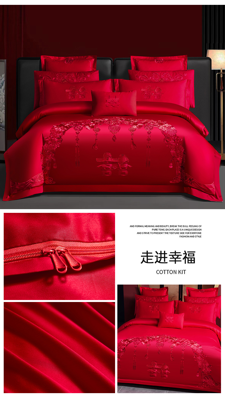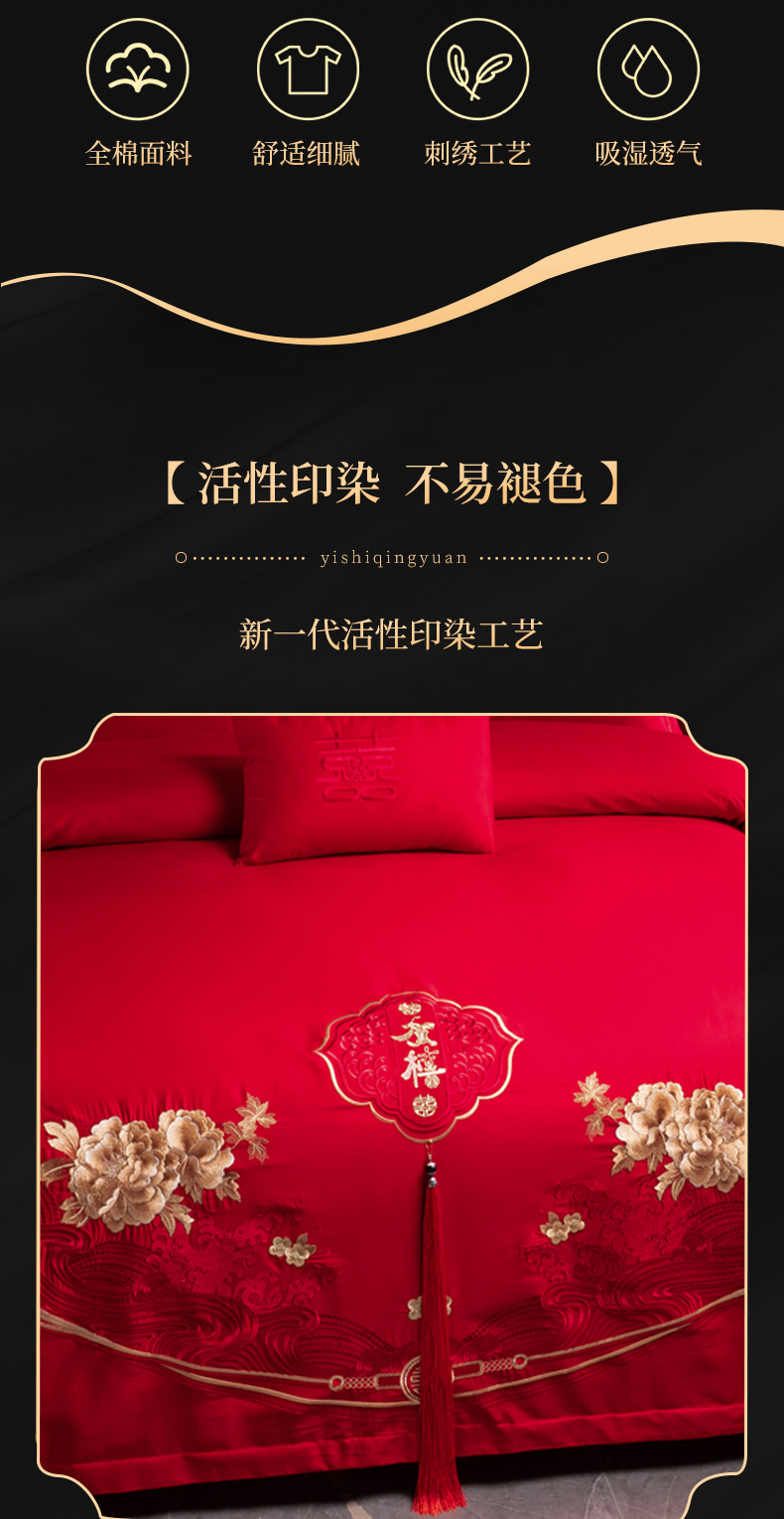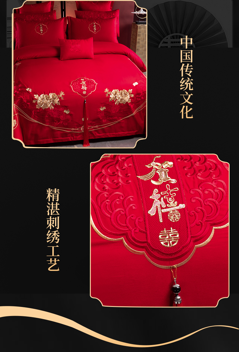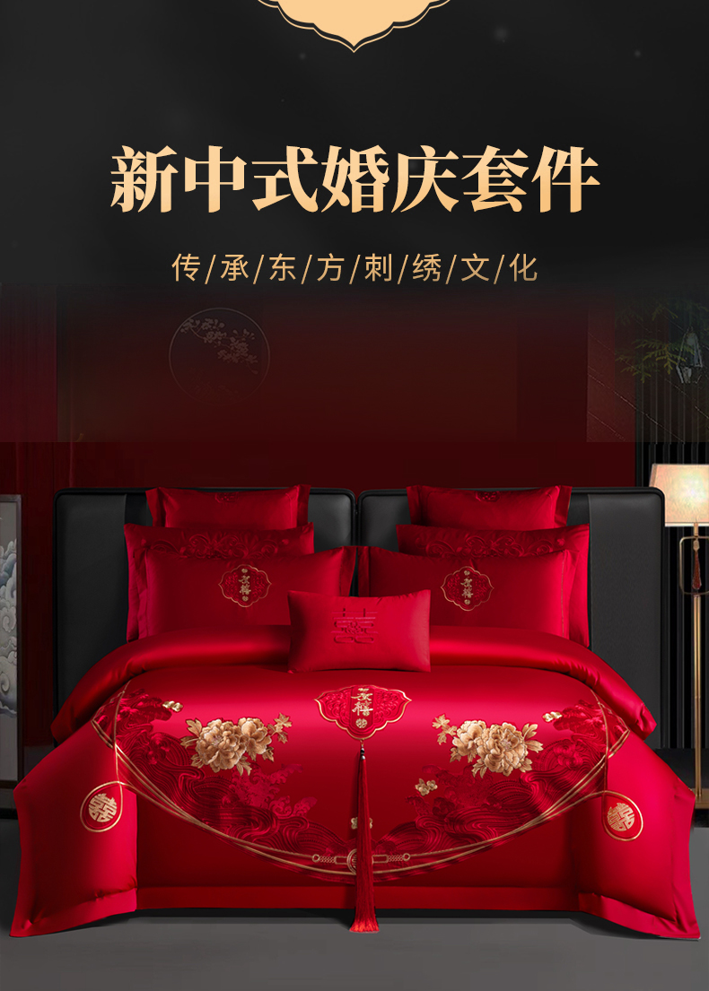 当前位置: 91家纺网 > 商品网购 > 床品套件 > 四件套 > 婚庆四件套 > 慕她家纺 2026慕她大花工艺款全棉纯棉婚庆四件套大红色刺绣结婚床上用品 恩爱情深