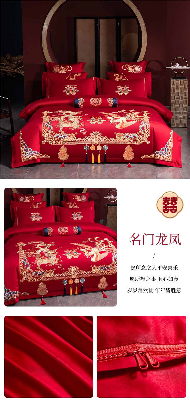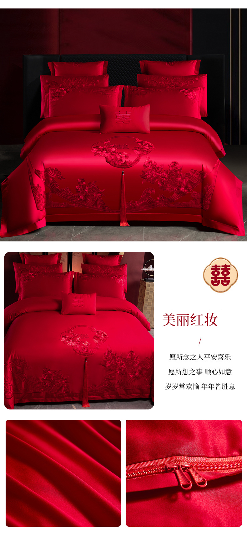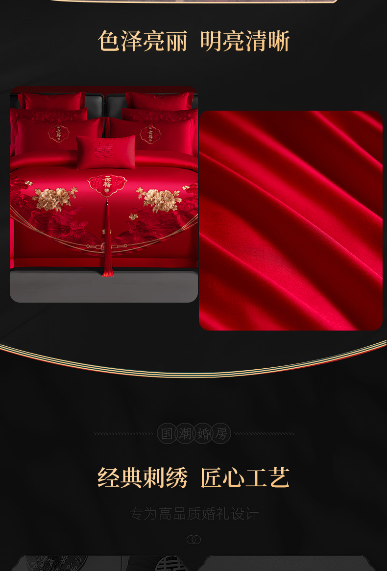 当前位置: 91家纺网 > 商品网购 > 床品套件 > 四件套 > 婚庆四件套 > 慕她家纺 2026慕她大花工艺款全棉纯棉婚庆四件套大红色刺绣结婚床上用品 恩爱情深