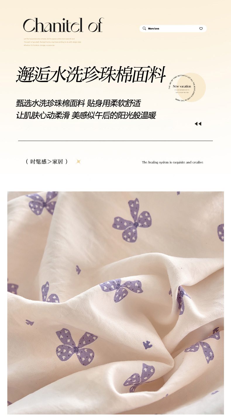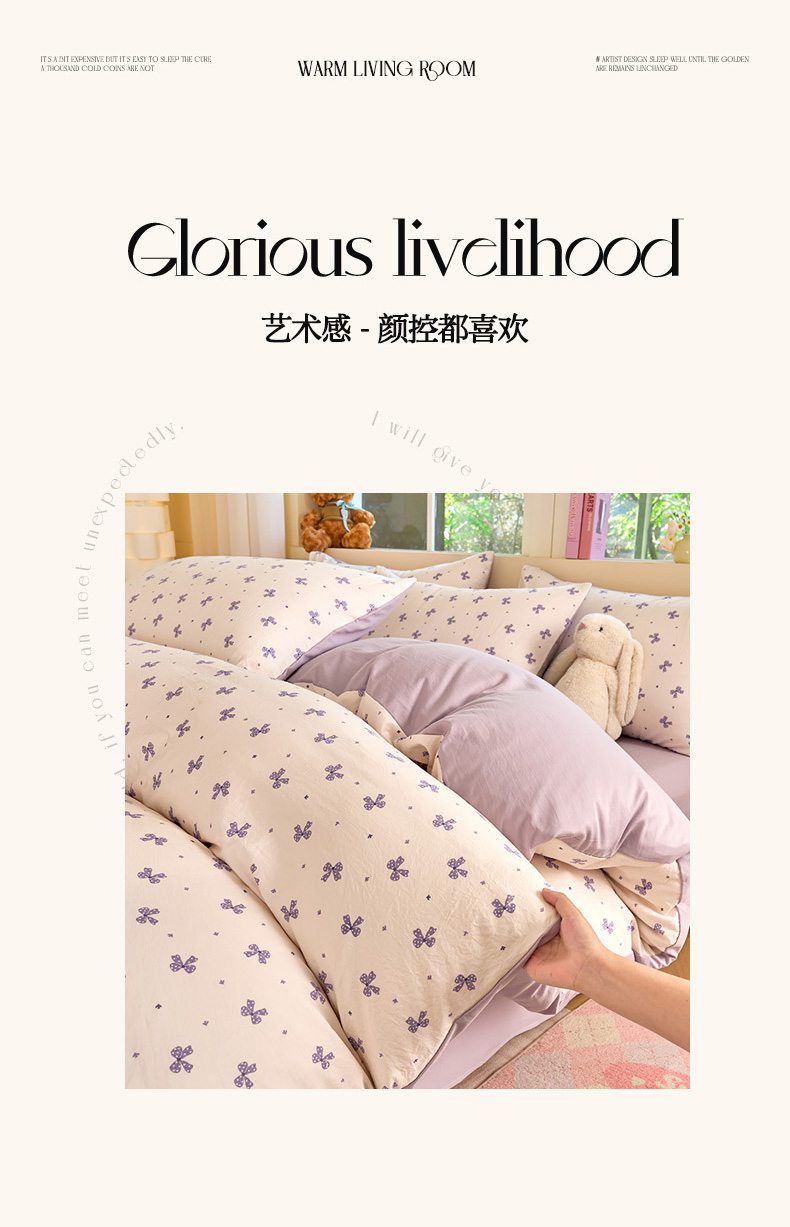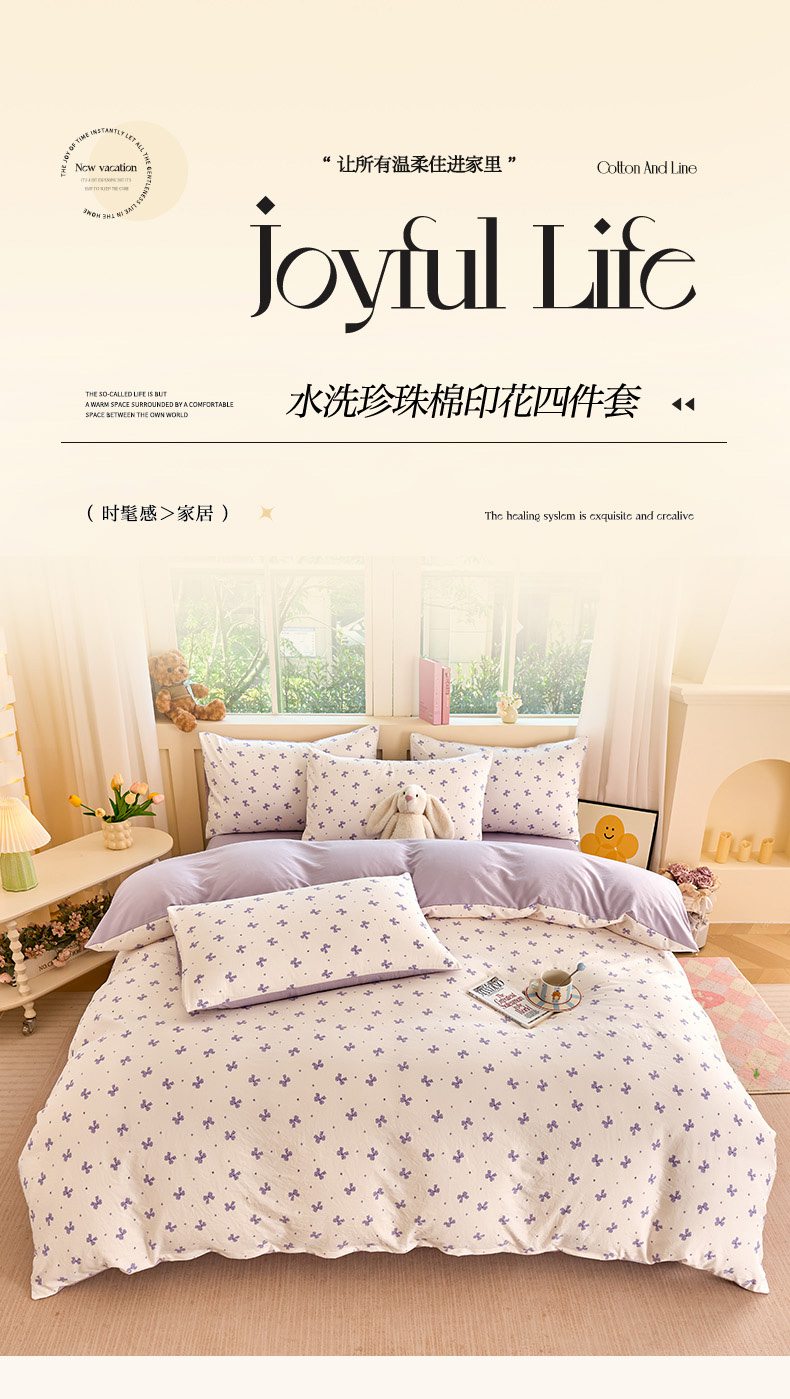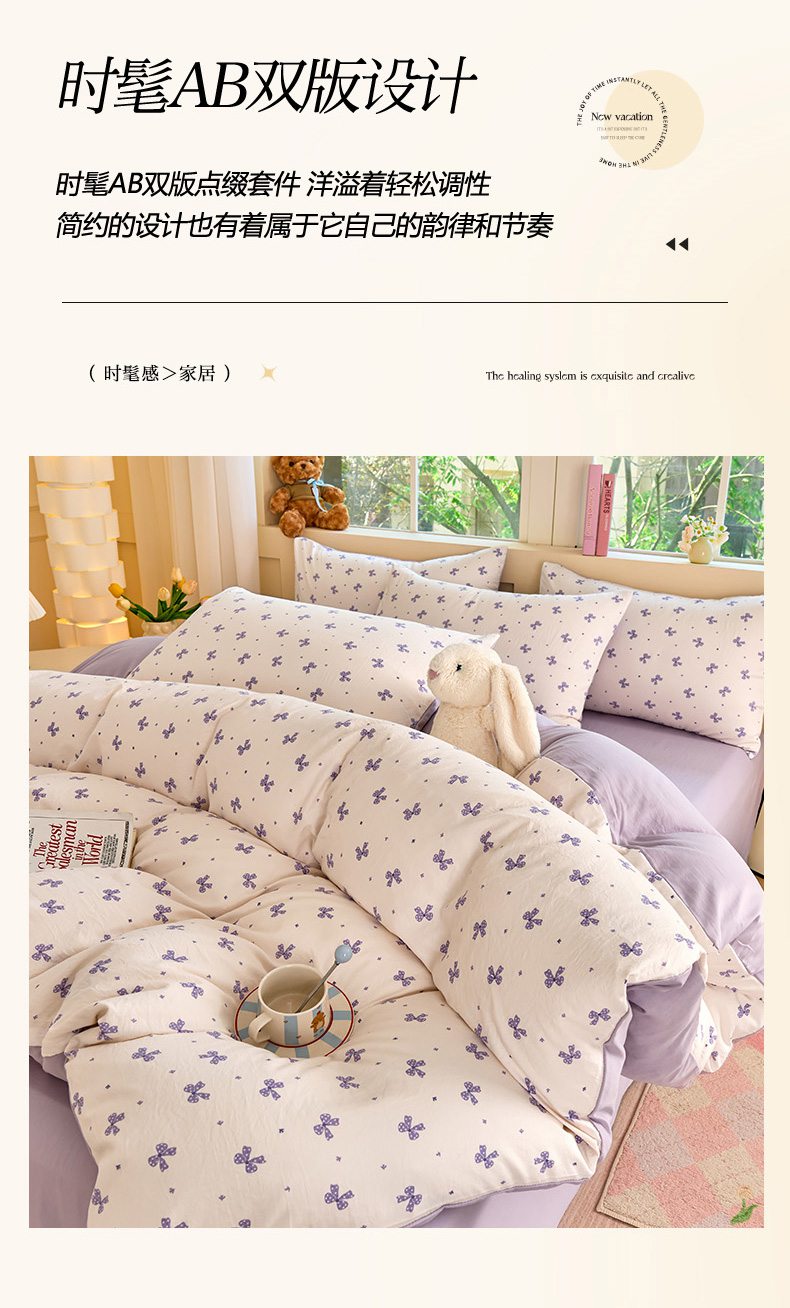 当前位置: 91家纺网 > 商品网购 > 床品套件 > 四件套 > 水洗棉四件套 > 卢赛尔 2026新款古法水洗仿棉云感棉学生三件套四件套 蝴蝶结紫