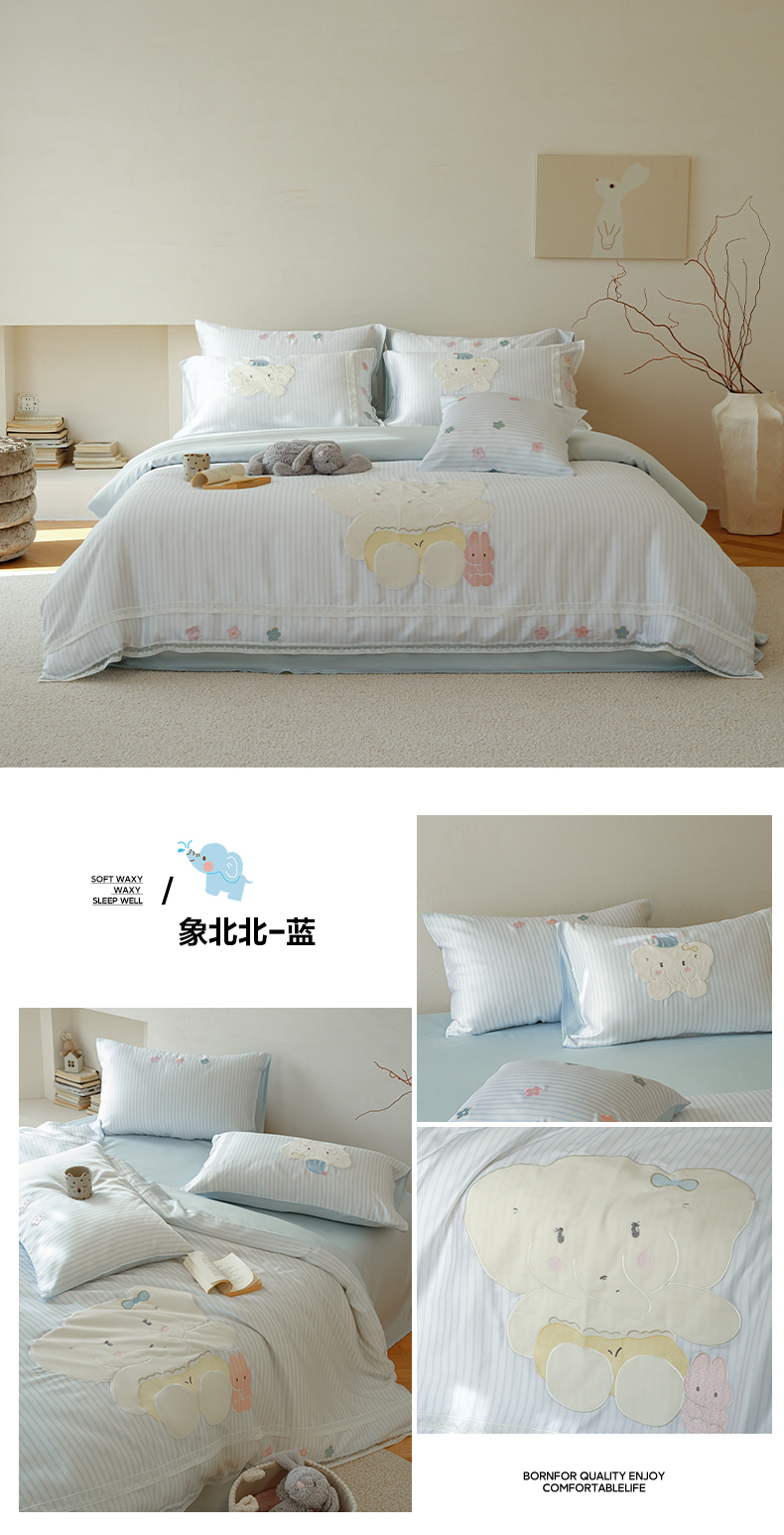 当前位置: 91家纺网 > 商品网购 > 床品套件 > 四件套 > 莱赛尔四件套 > 简纯主义 2026新款莱赛尔纤维天丝刺绣绣花四件套象北北 象北北-蓝