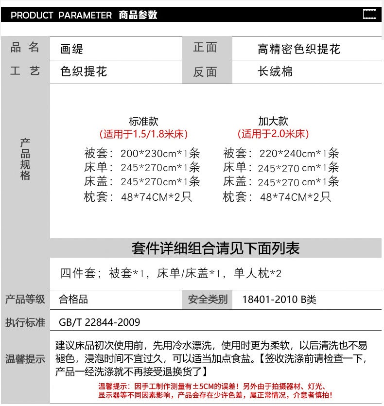 [{"sp_id":11,"sp_name":"\u989c\u8272","sp_format":2,"sp_list":[{"sp_value_id":1662,"sp_value_name":"\u7e41\u534e","sp_value_image":{"id":999,"path":"https:\/\/img3.91jf.com\/ghelp\/2026\/20260302\/20260302131247_605139.jpg"},"sp_value_video":{"id":0,"img":"","path":"","time":0,"download_num":0,"play_num":0},"price":"999.00","storage":3000,"weight":"3.000","is_check_weight":0,"plus_price":"","sp_sort":0}]},{"sp_id":10,"sp_name":"\u5c3a\u5bf8","sp_format":1,"sp_list":[{"sp_value_id":41,"sp_value_name":"1.5m\u5e8a\u5355\u6b3e\u56db\u4ef6\u5957","sp_value_image":{"id":0,"path":""},"sp_value_video":{"id":0,"img":"","path":"","time":0,"download_num":0,"play_num":0},"price":"999.00","storage":500,"weight":"3.000","is_check_weight":0,"plus_price":"","sp_sort":5},{"sp_value_id":42,"sp_value_name":"1.8m\u5e8a\u5355\u6b3e\u56db\u4ef6\u5957","sp_value_image":{"id":0,"path":""},"sp_value_video":{"id":0,"img":"","path":"","time":0,"download_num":0,"play_num":0},"price":"999.00","storage":500,"weight":"3.000","is_check_weight":0,"plus_price":"","sp_sort":6},{"sp_value_id":43,"sp_value_name":"2.0m\u5e8a\u5355\u6b3e\u56db\u4ef6\u5957","sp_value_image":{"id":0,"path":""},"sp_value_video":{"id":0,"img":"","path":"","time":0,"download_num":0,"play_num":0},"price":"999.00","storage":500,"weight":"3.000","is_check_weight":0,"plus_price":"","sp_sort":7},{"sp_value_id":44,"sp_value_name":"1.5m\u5e8a\u76d6\u6b3e\u56db\u4ef6\u5957","sp_value_image":{"id":0,"path":""},"sp_value_video":{"id":0,"img":"","path":"","time":0,"download_num":0,"play_num":0},"price":"999.00","storage":500,"weight":"3.000","is_check_weight":0,"plus_price":"","sp_sort":8},{"sp_value_id":45,"sp_value_name":"1.8m\u5e8a\u76d6\u6b3e\u56db\u4ef6\u5957","sp_value_image":{"id":0,"path":""},"sp_value_video":{"id":0,"img":"","path":"","time":0,"download_num":0,"play_num":0},"price":"999.00","storage":500,"weight":"3.000","is_check_weight":0,"plus_price":"","sp_sort":9},{"sp_value_id":736,"sp_value_name":"2.0m\u5e8a\u76d6\u6b3e\u56db\u4ef6\u5957","sp_value_image":{"id":0,"path":""},"sp_value_video":{"id":0,"img":"","path":"","time":0,"download_num":0,"play_num":0},"price":"999.00","storage":500,"weight":"3.000","is_check_weight":0,"plus_price":"","sp_sort":10}]}]