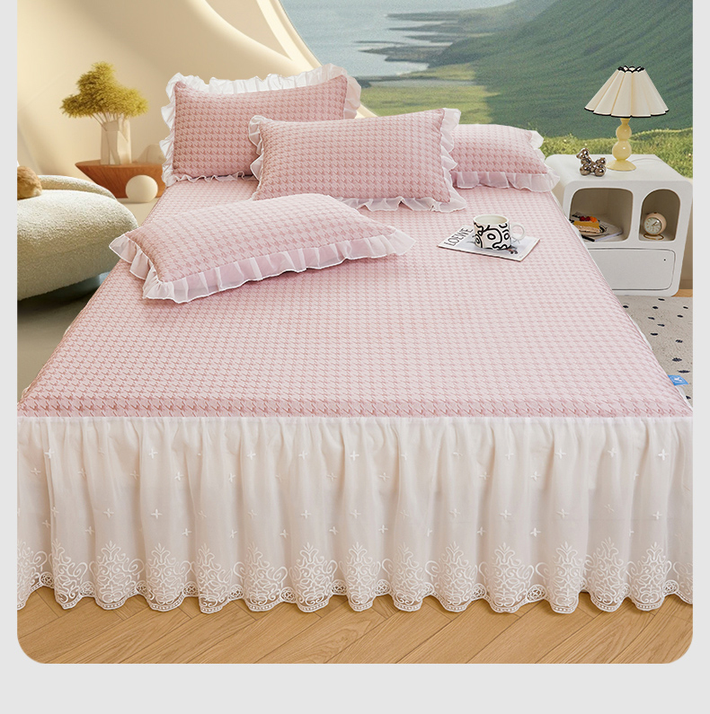 (总)源梦家纺 2024新款幸运草夹棉单床裙,纯白,大红,豆沙,粉色,灰色,兰色,米黄,玉色
