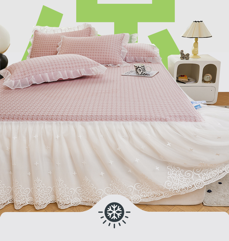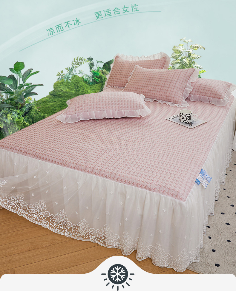 (总)怡源梦 2026新款A类冰豆豆凉感提花床裙凉席-花之恋系列,花之恋 香槟金,花之恋 蓝色,花之恋 粉色,花之恋 灰色,花之恋 绿色,花之恋 紫色