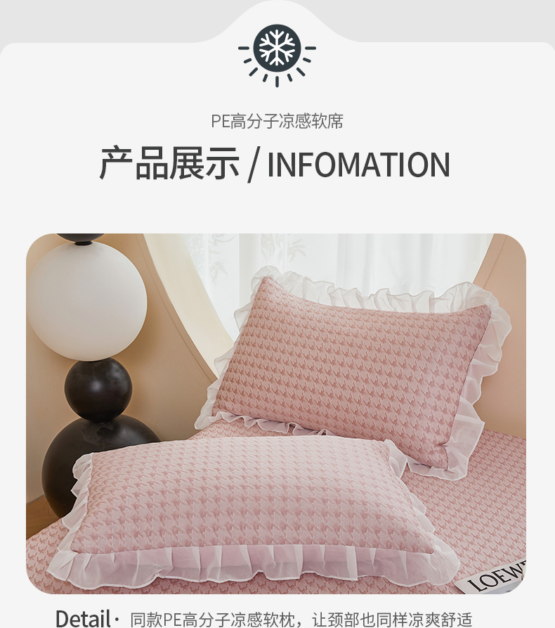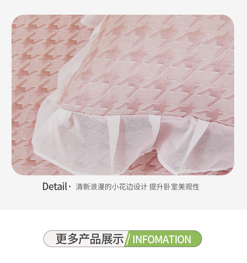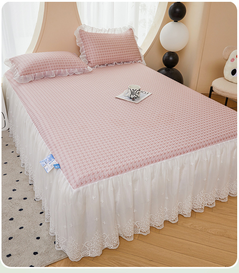 商品名称:怡源梦 2026新款A类PE高分子凉感软席提花冰豆豆床裙席子凉席-千鸟格 千鸟格-粉色