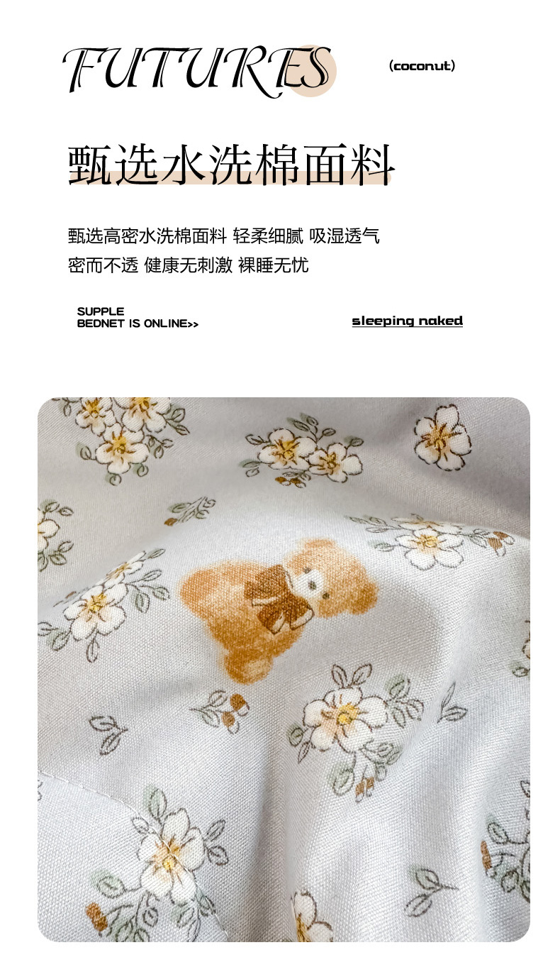 当前位置: 91家纺网 > 商品网购 > 床品套件 > 四件套 > 其它四件套 > 慕澄家纺 2026新款小清新印花水洗棉床盖夏被四件套 可爱小熊